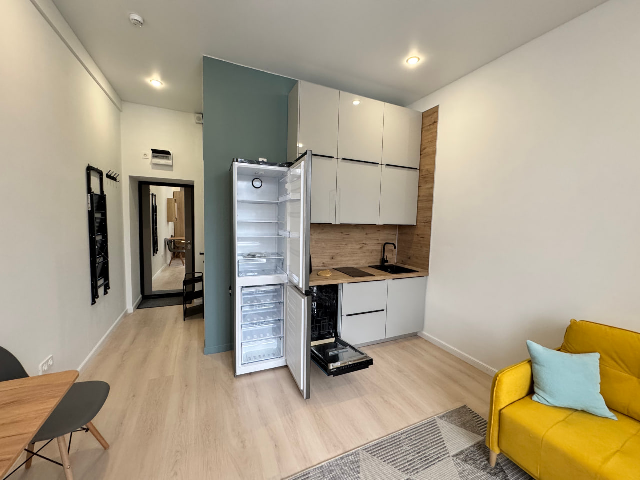 Компактная студия с отделкой 19,6 кв.м в подмосковном городе Люберцы. Собственная огороженная охраняемая территория с парковкой.