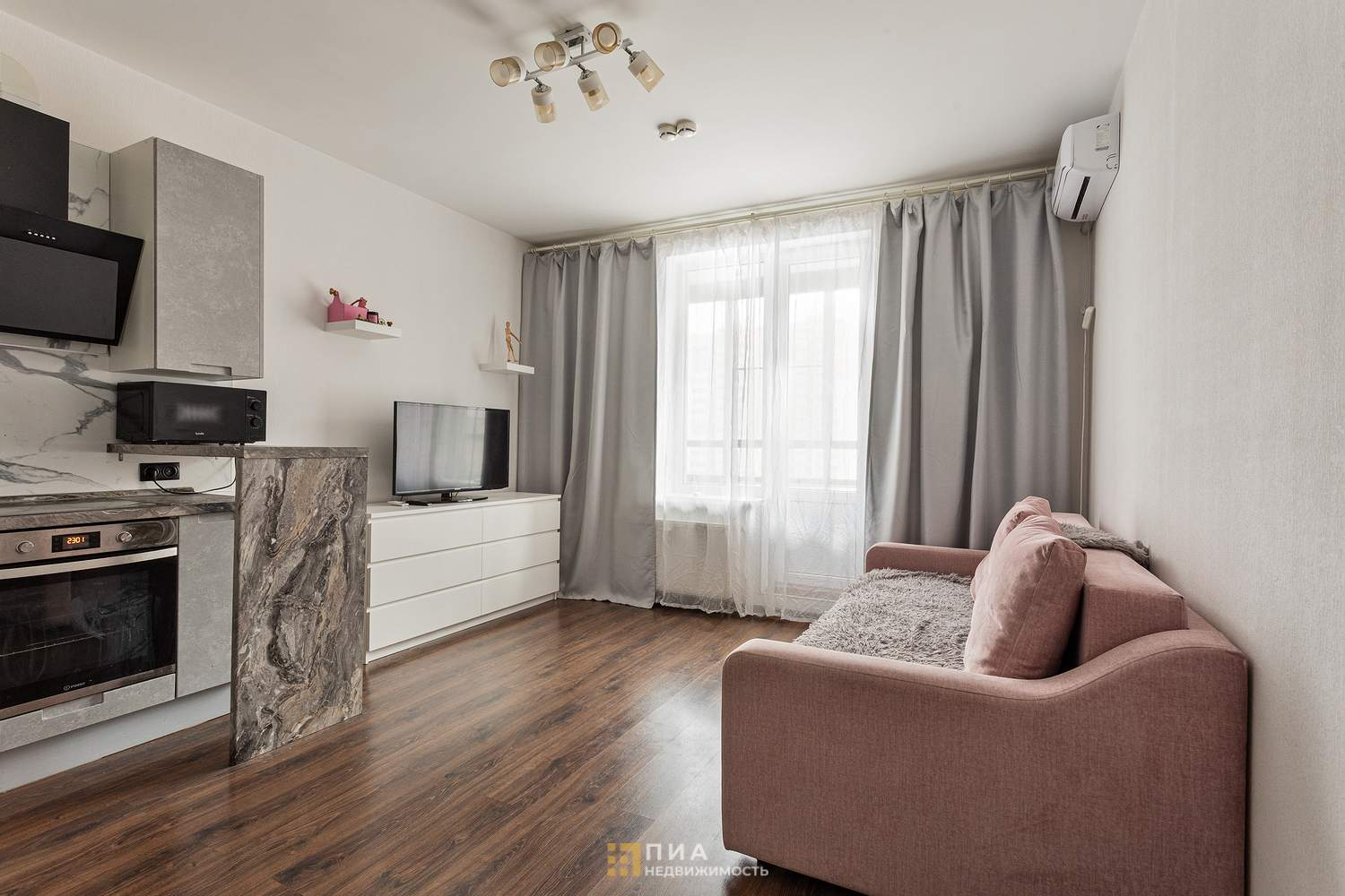 Арт. 16132801. Продаётся стильная и уютная студия с качественной отделкой. Просторный санузел с душевой, есть место для стиральной машины. Установлен кондиционер. Квартира в отличном состоянии, готова к проживанию - вся необходимая мебель и техника остается будущему собственнику.