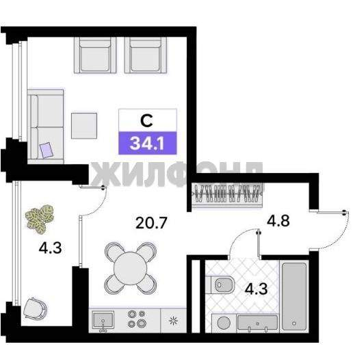 | Площадь общая | 34.1 |
