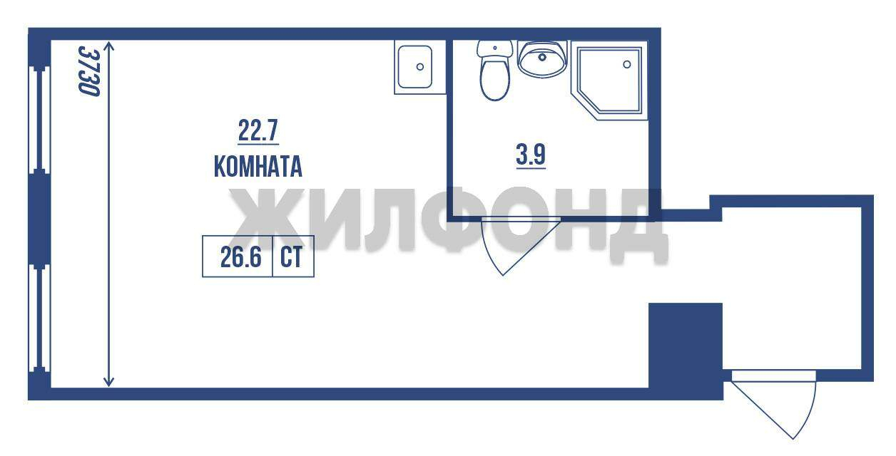 Студия, 26,6 м?, кухня 5 м?