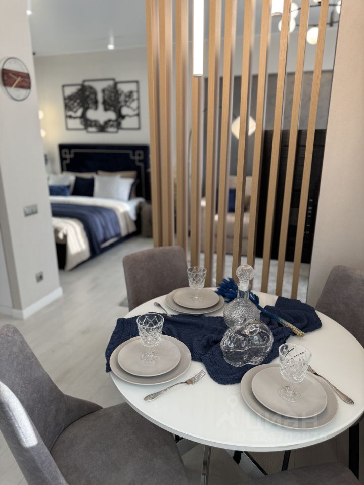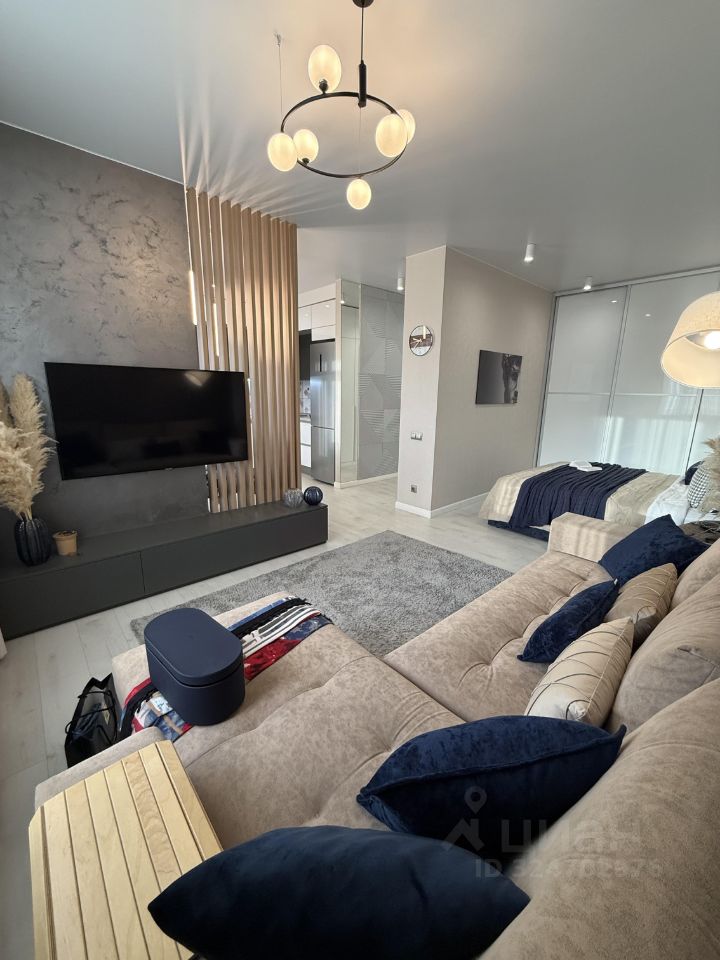 В квартире выполнена премиальная дизайнерская отделка в стиле городской неоклассики. Функциональное планировочное решение: гостиная-столовая с зоной кухни, выделенная спальня, санузел с душевой, прихожая, зона лоджии для возможного обустройства кабинета.