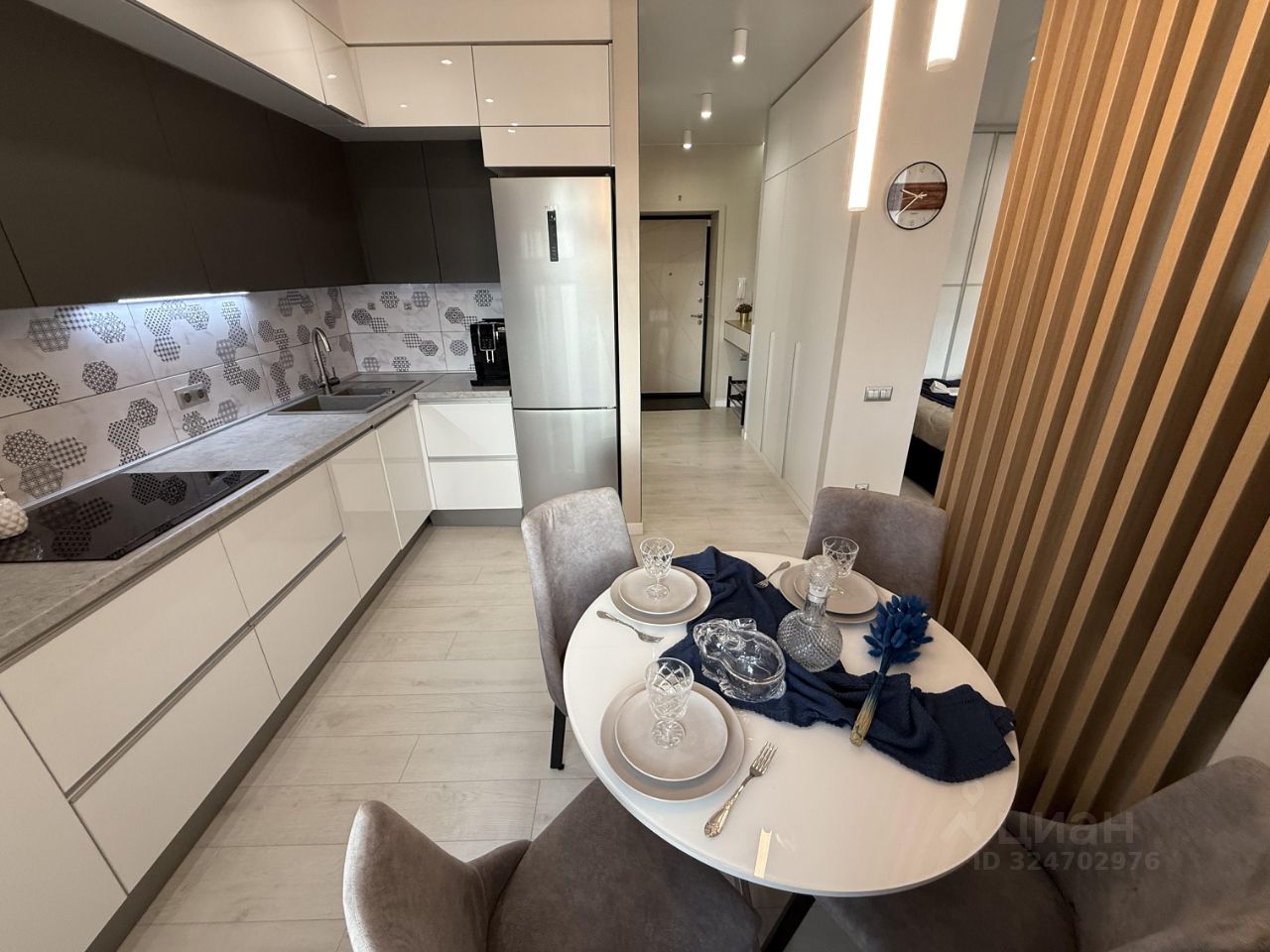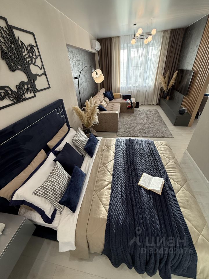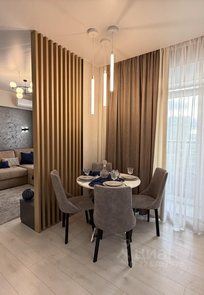 Квартира полностью укомплектована современной мебелью и бытовой техникой и готова к проживанию. Элегантный интерьер создает уникальную атмосферу уюта и комфорта.