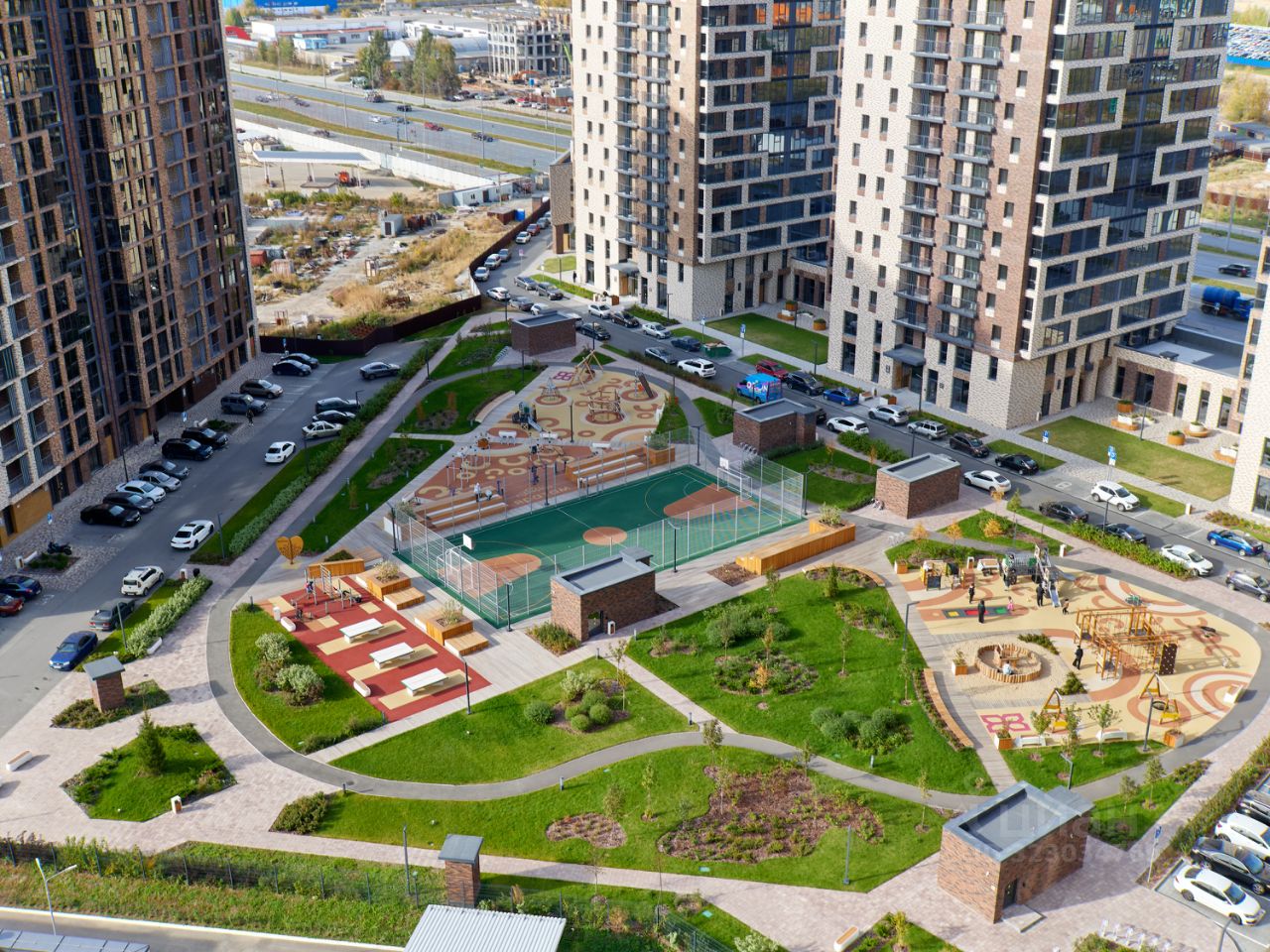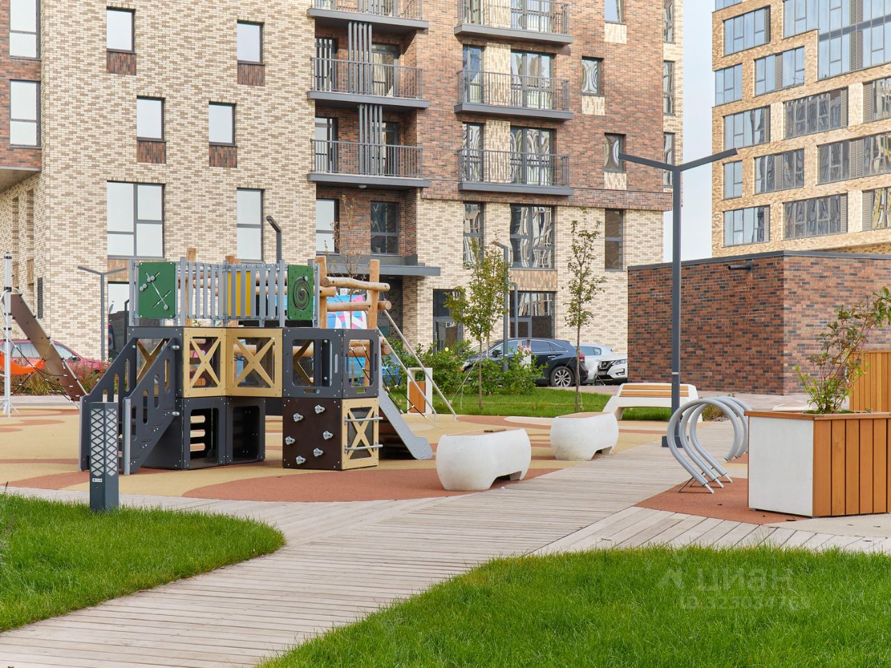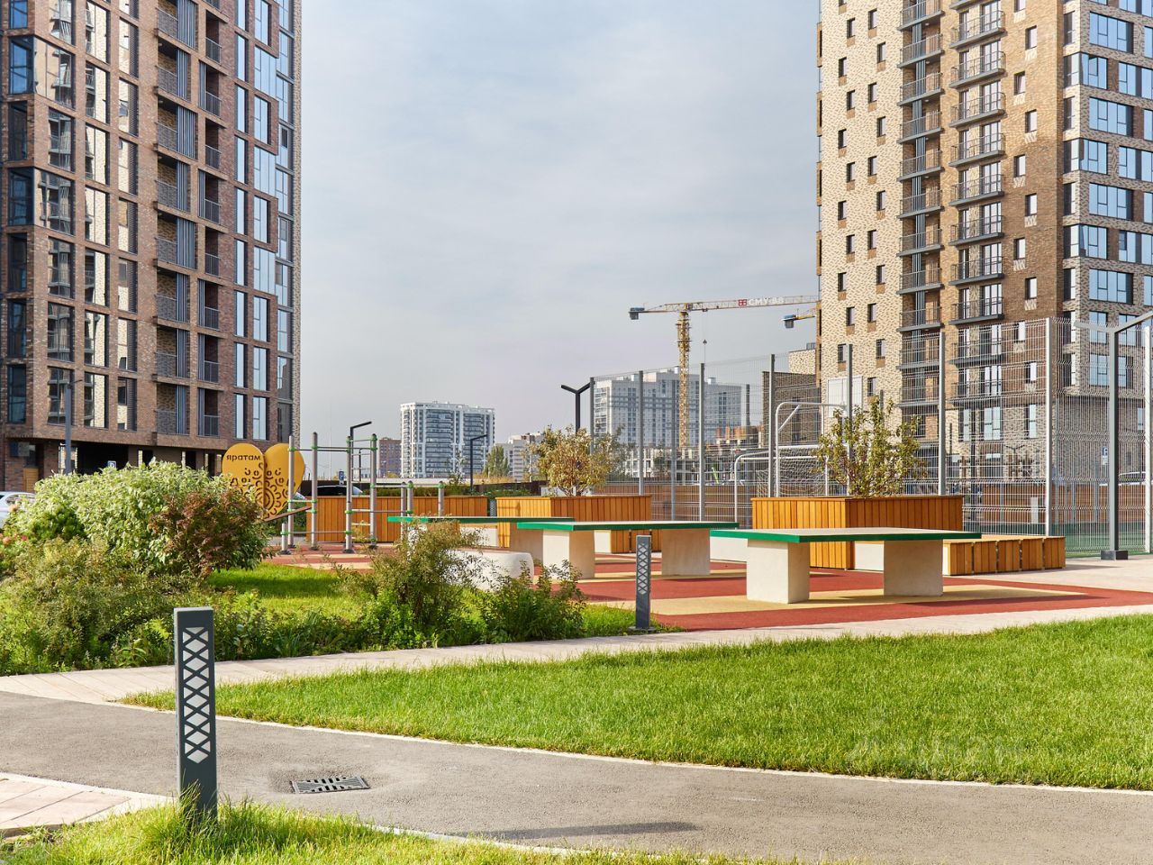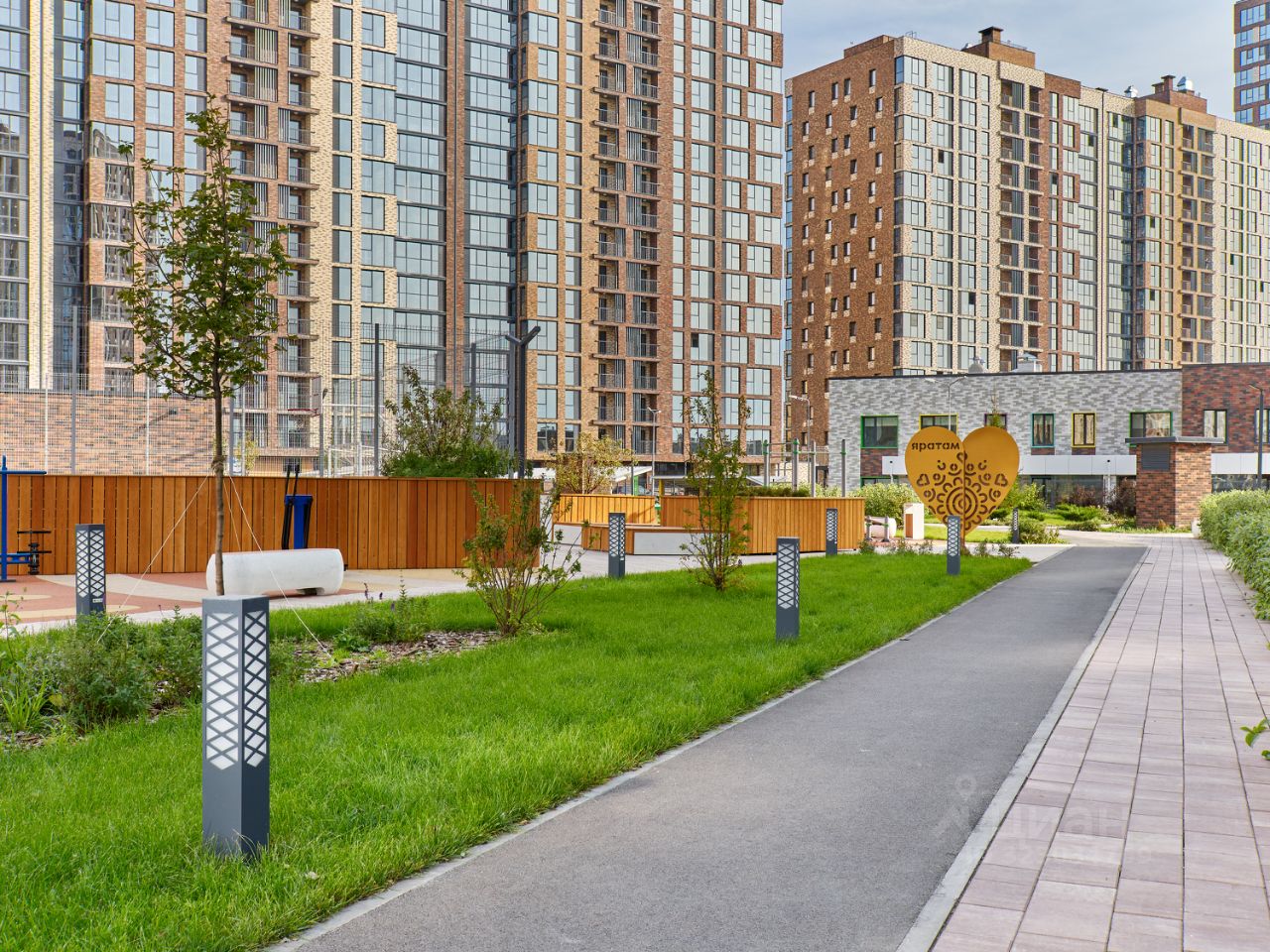 B удобном зеленом дворе-скверике, свободном от машин, расположатся зоны для занятия спортом, детские игровые площадки и пространство для отдыха, а прямо на территории комплекса построен муниципальный детский сад на 260 мест — ваш ребенок рядом с домом и в безопасности.
