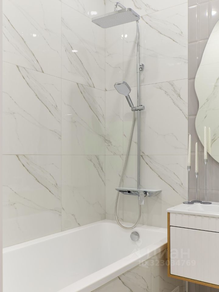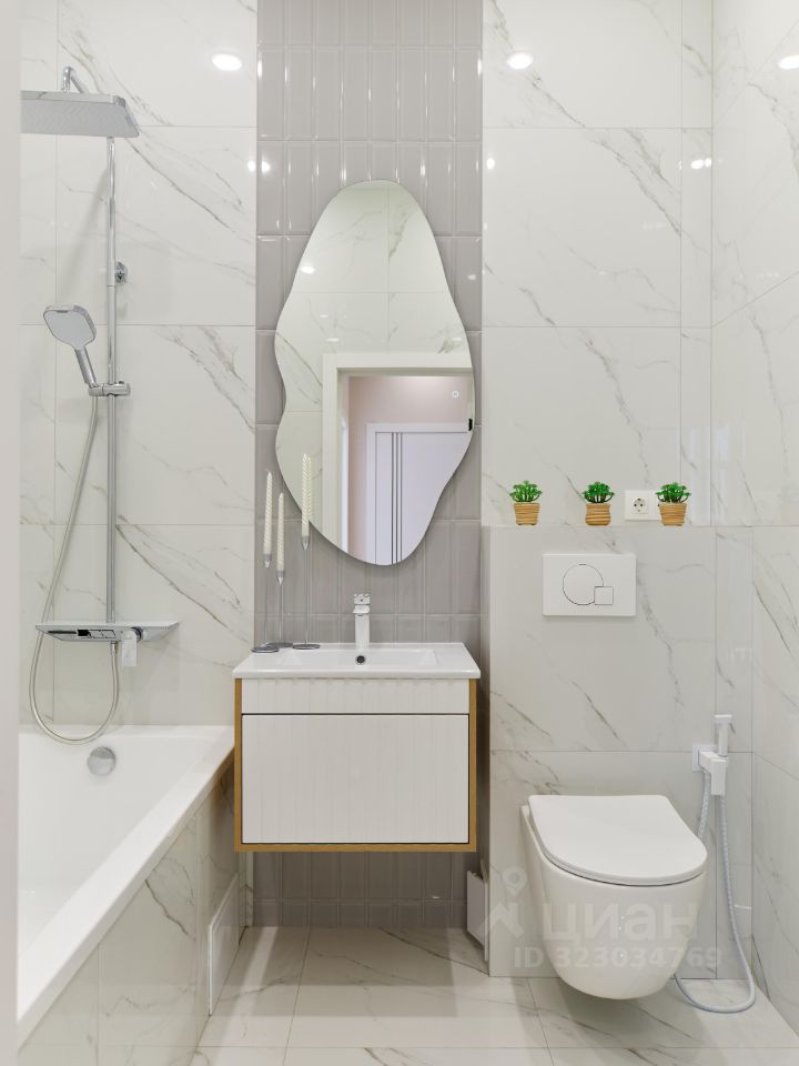 В ванной установлен тёплый пол, качественная сантехника премиальных брендов.