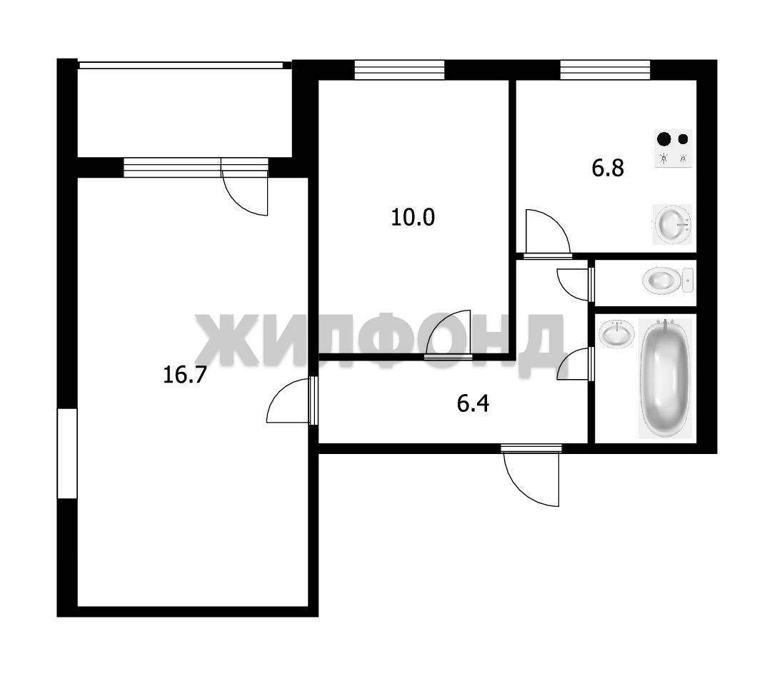 Продажа квартир / 2-комн., Россия, Новосибирская область, Новосибирск, Кропоткина улица, 5 200 000