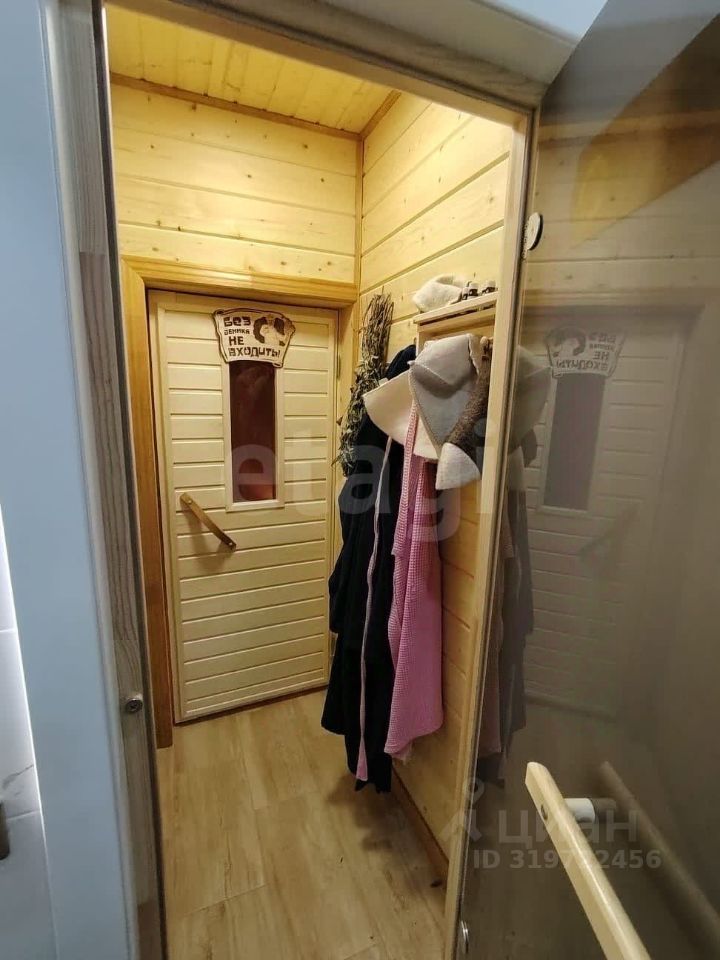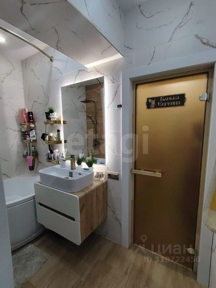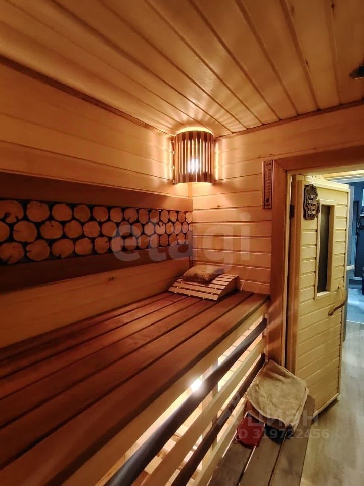Санузел отделан практичной керамической плиткой, в квартире предусмотрена сауна — редкое преимущество для городского жилья.