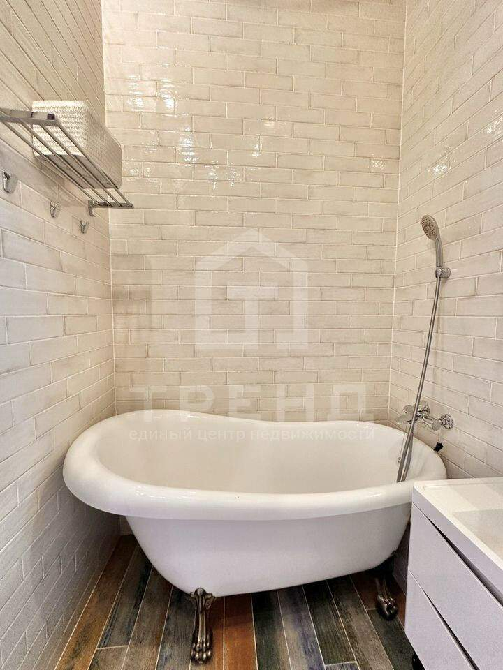 Дизайнерский санузел 4 м с ванной и душевой кабиной, теплым полом