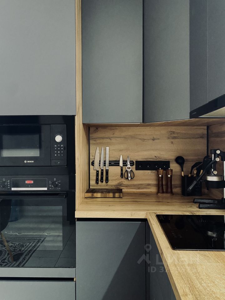 Остаётся встроенная мебель(кухня, два шкафа купе) и техника(встроенный холодильник, духовой шкаф Bosch, микроволновая печь Bosch, посудомоечная машина Kuppersberg, варочная панель и вытяжка Kuppersberg, стиральная машина, мощный кондиционер Tesla).
