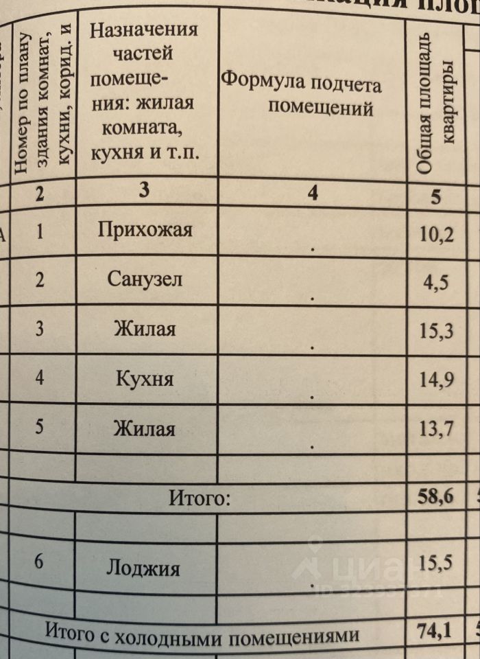 | Площадь общая | 74.1 |