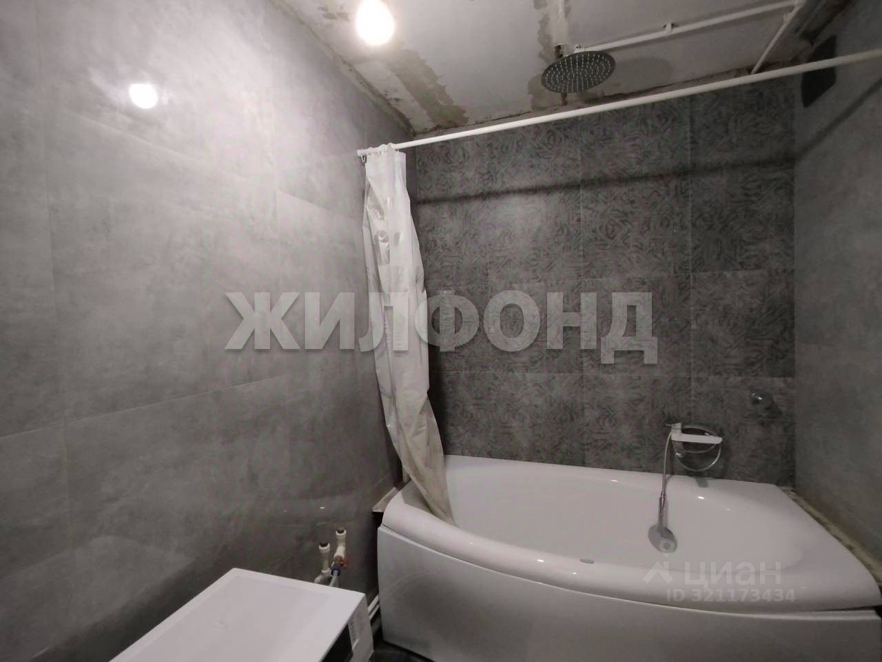 Санузел совмещенный, облицованный качественной плиткой. Унитаз подвесной с инсталляцией, а ванна очень удобной формы с тропическим душем.