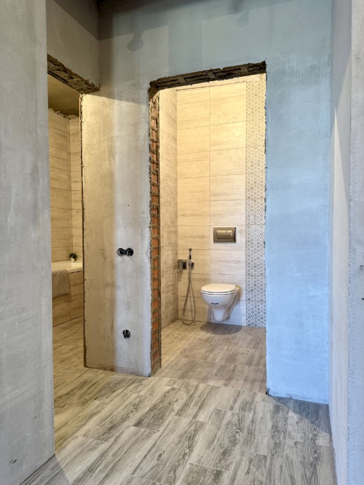 Главная особенность этой квартиры в том, что все черновые работы проведены (возведены все перегородки, разведена вся электрика, оштукатурены стены, стяжка, сделано напольное покрытие, разведена вся сантехника, установлена чистовая сантехника)
