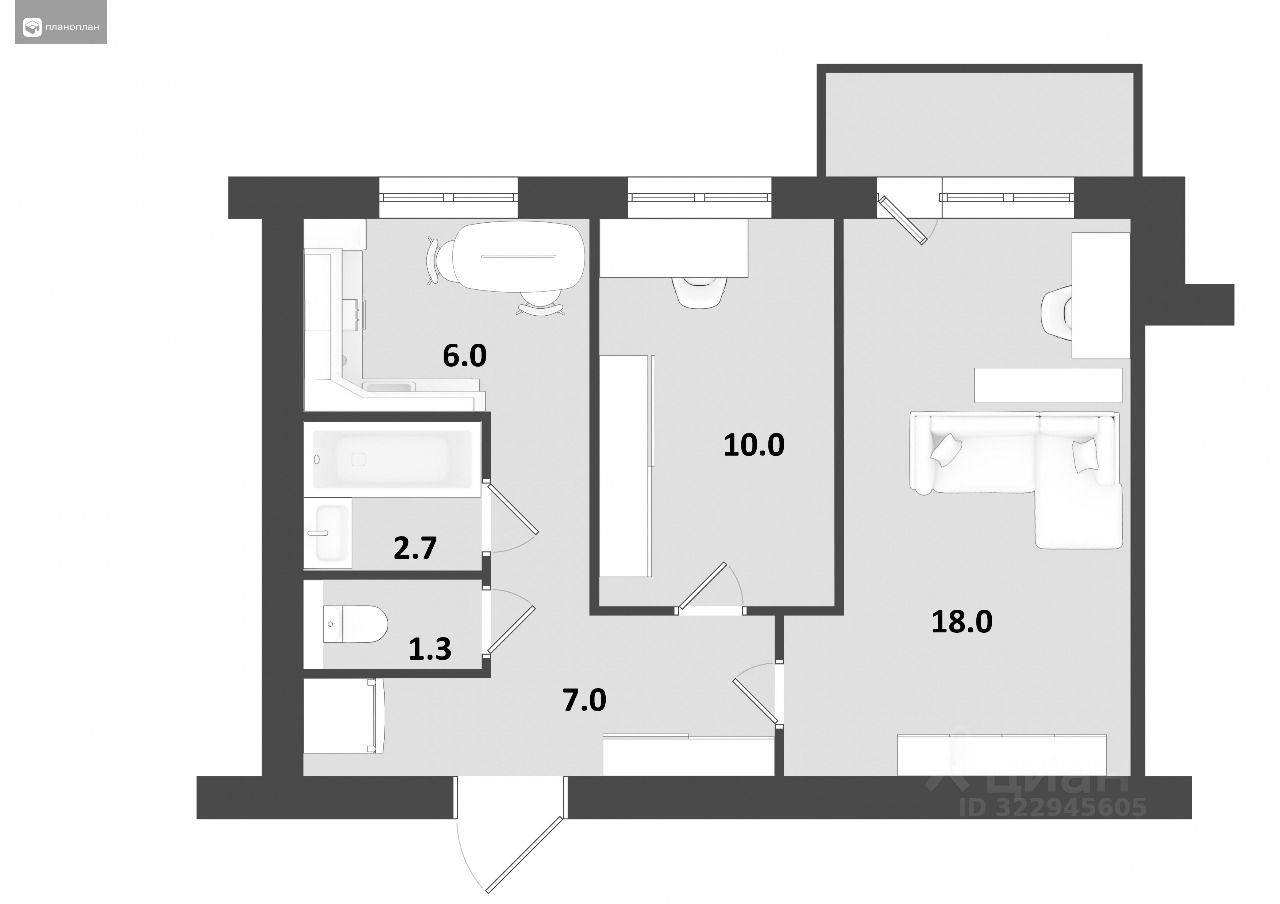 • Просторный зал с выходом на застекленный балкон;