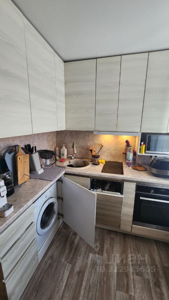 • Общая площадь квартиры - 45 м²: кухня с новым кухонным гарнитуром и встроенной техникой, в которую входят посудомойка, варочная панель, вытяжка, духовой шкаф и стиральная машина
