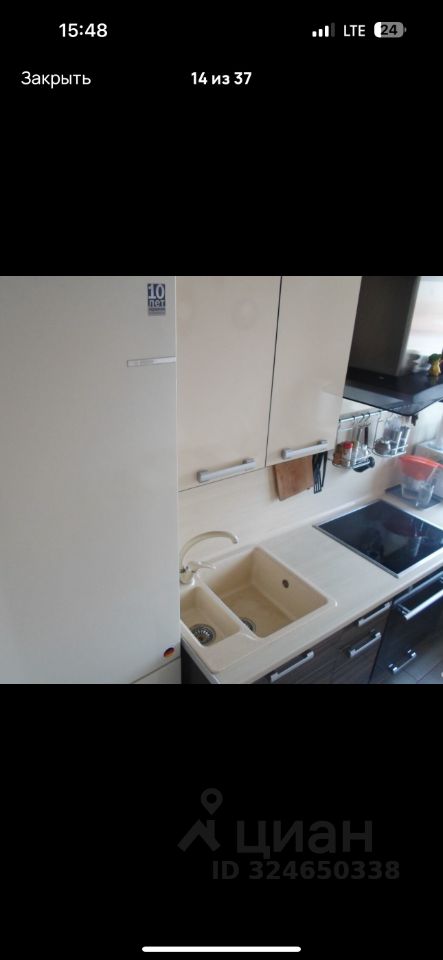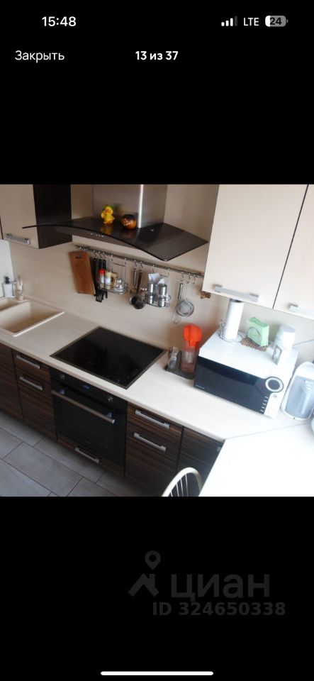 В прихожей большой шкаф-купе. Встроенная дорогая кухня под заказ.