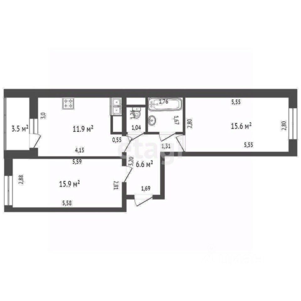 | Кол.во комнат | 2 |