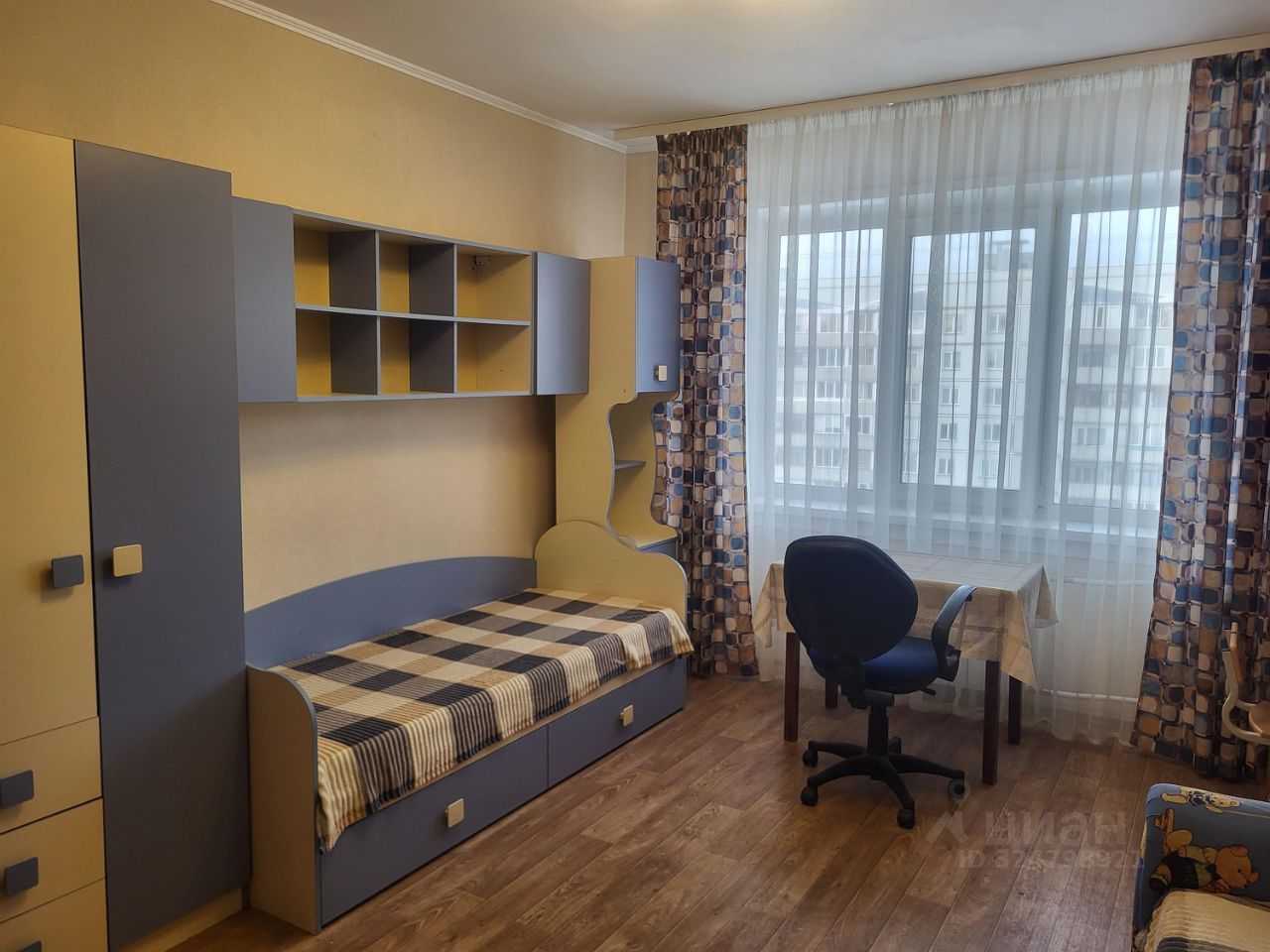 Окна выходят на большой двор с хорошей детской площадкой. В шаговой доступности школа, детские сады, магазины (Ярче, Пятерочка, Магнит), открытый каток/футбольное поле, чудесный лес для прогулок.