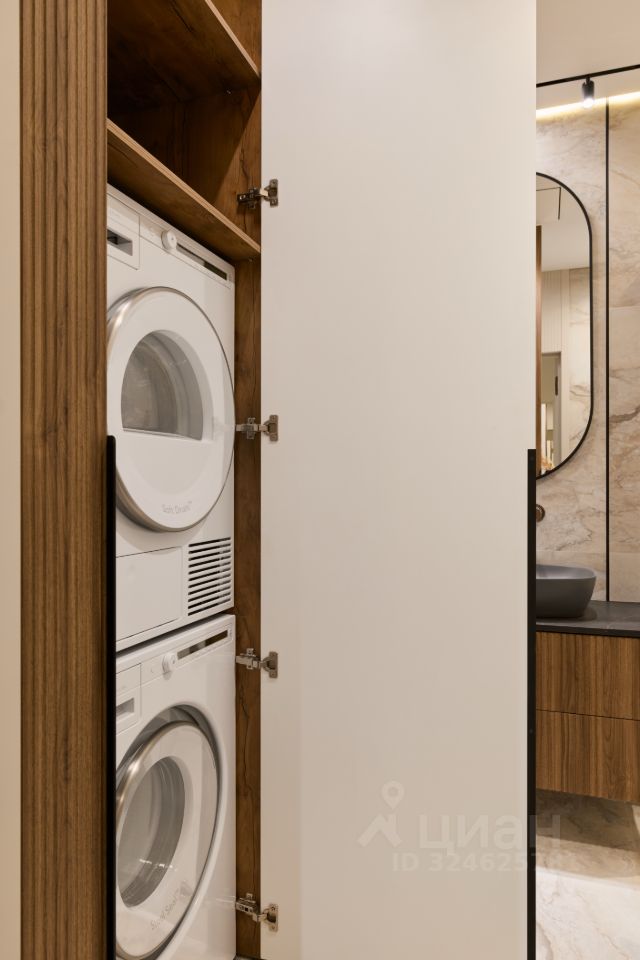 Квартира укомплектована премиальной техникой Европейского производства. Стиральная и сушильная машины высокой линейки ASKO
