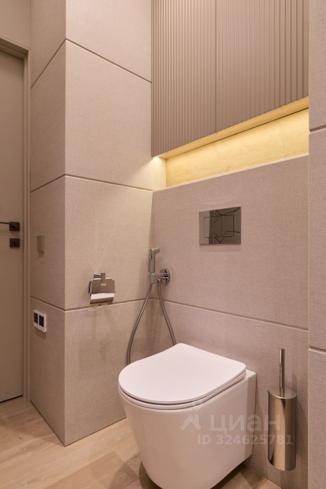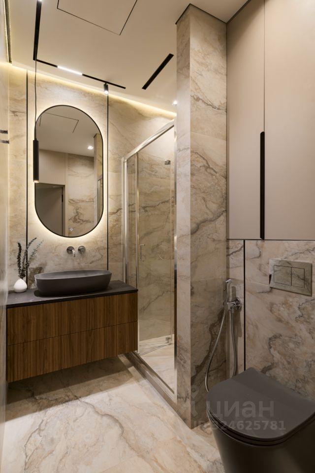 В санузлах реализована теплая стена вместо полотенцесушителя, фактурный керамогранит из Испании и Италии. Вся сантехника немецкого и итальянского производства