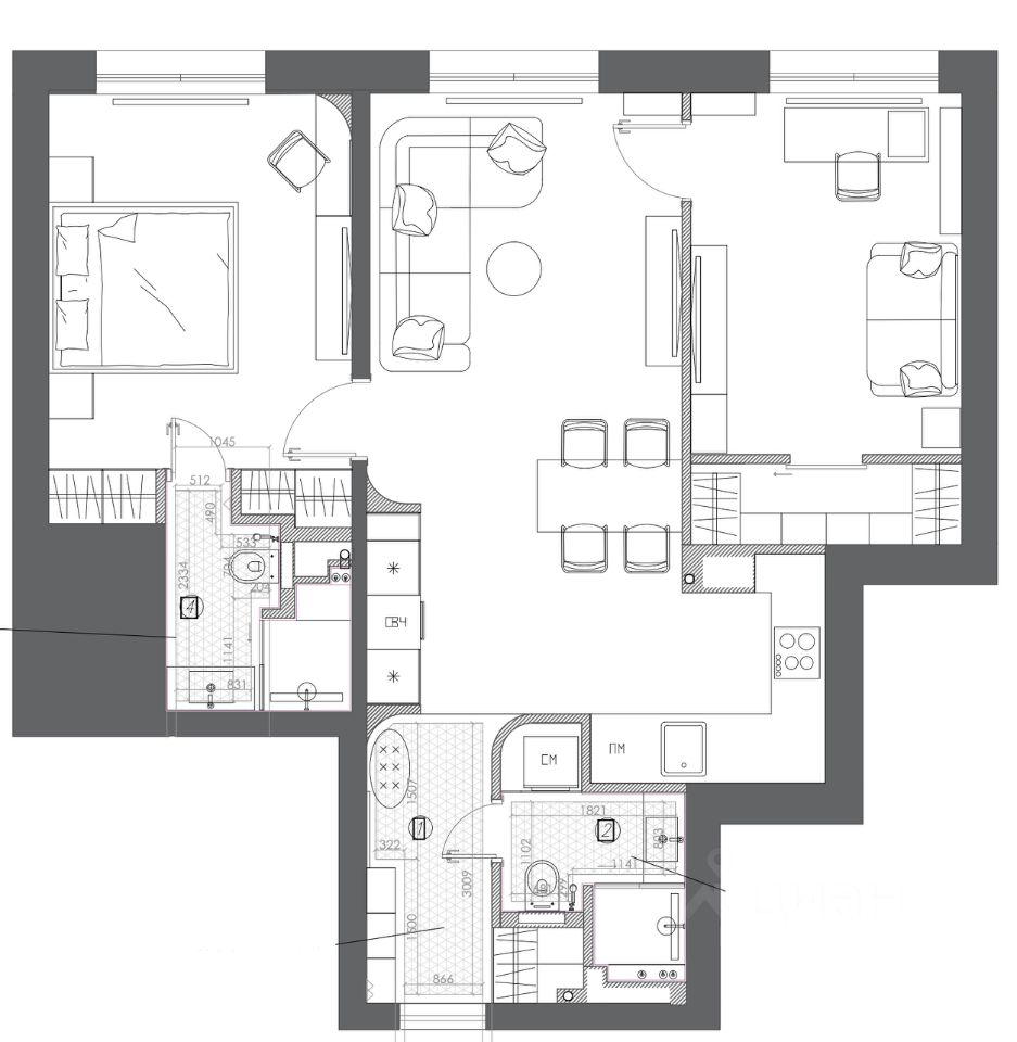 В квартире архитектурно продуман и выверен каждый узел. Детально спроектировано взаимодействие инженерных систем, умного дома, элементов дизайна и материалов.