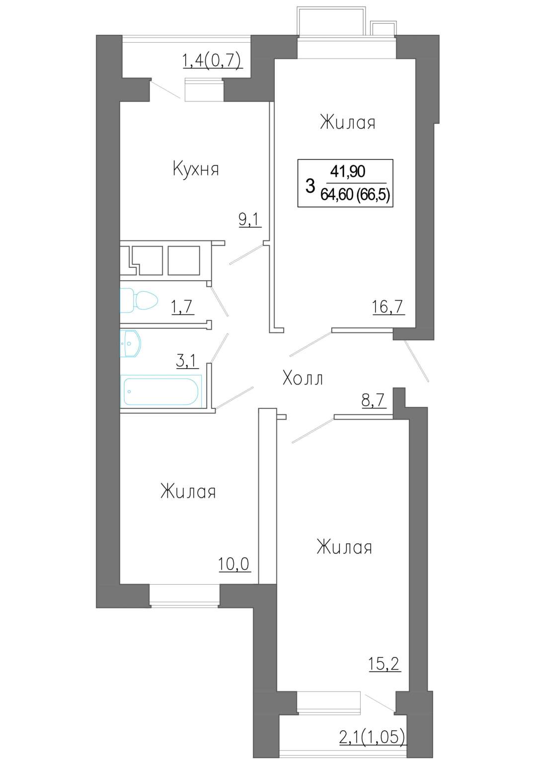 Площадь общая | 66.5 |