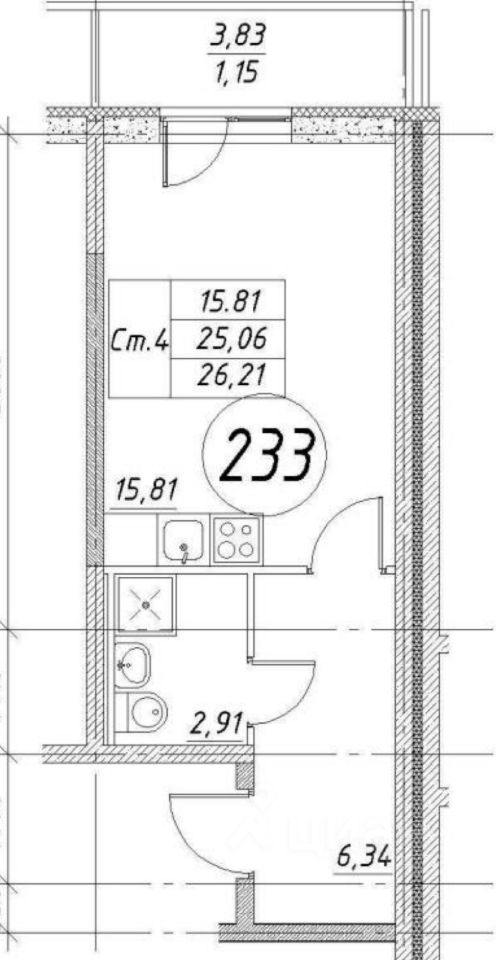 -Балкон/лоджия 3,83 м2.