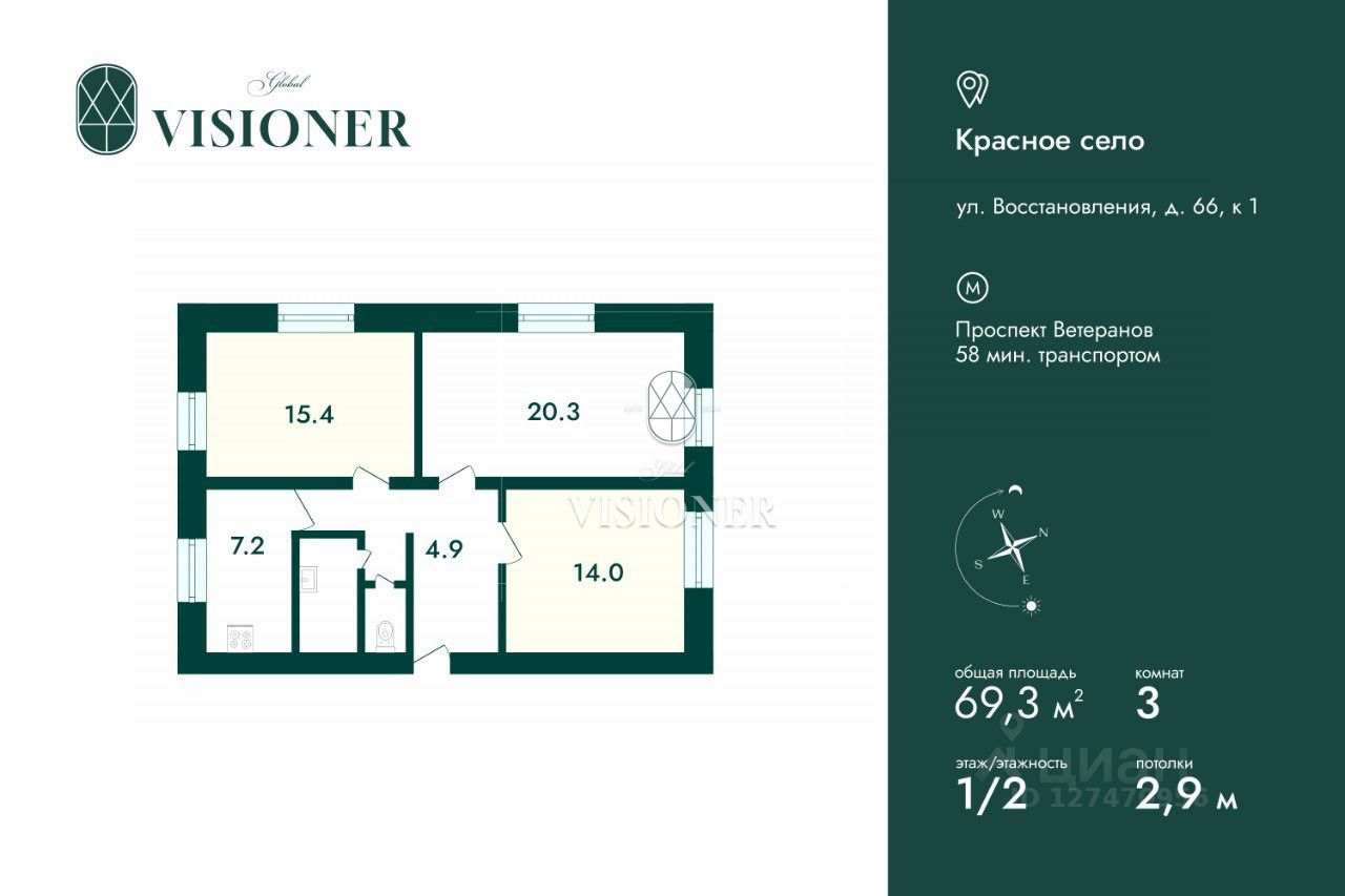 Продажа квартир / Комнаты, Санкт-Петербург, 1 500 000