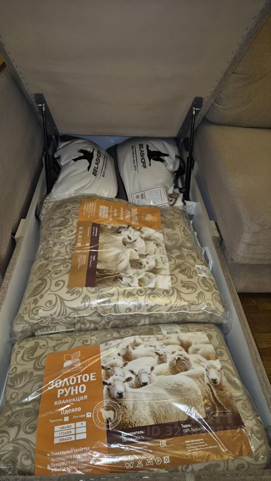 Новые подушки и одеяла, новые кастрюли и сковородки, новые столовые приборы.
