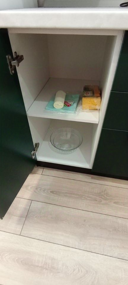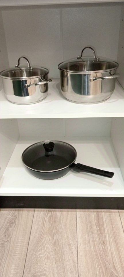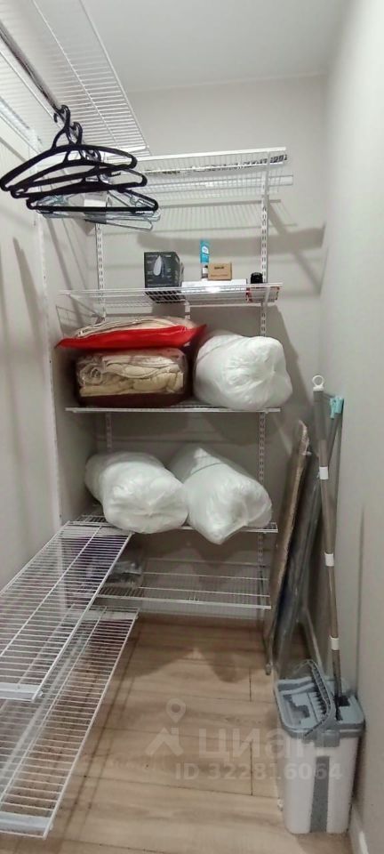 * **Кладовая в квартире:** Гардеробная система, 4 подушки и 2 одеяла, вся бытовая техника: вертикальный пылесос, утюг, гладильная доска, современная швабра, веник и совок.