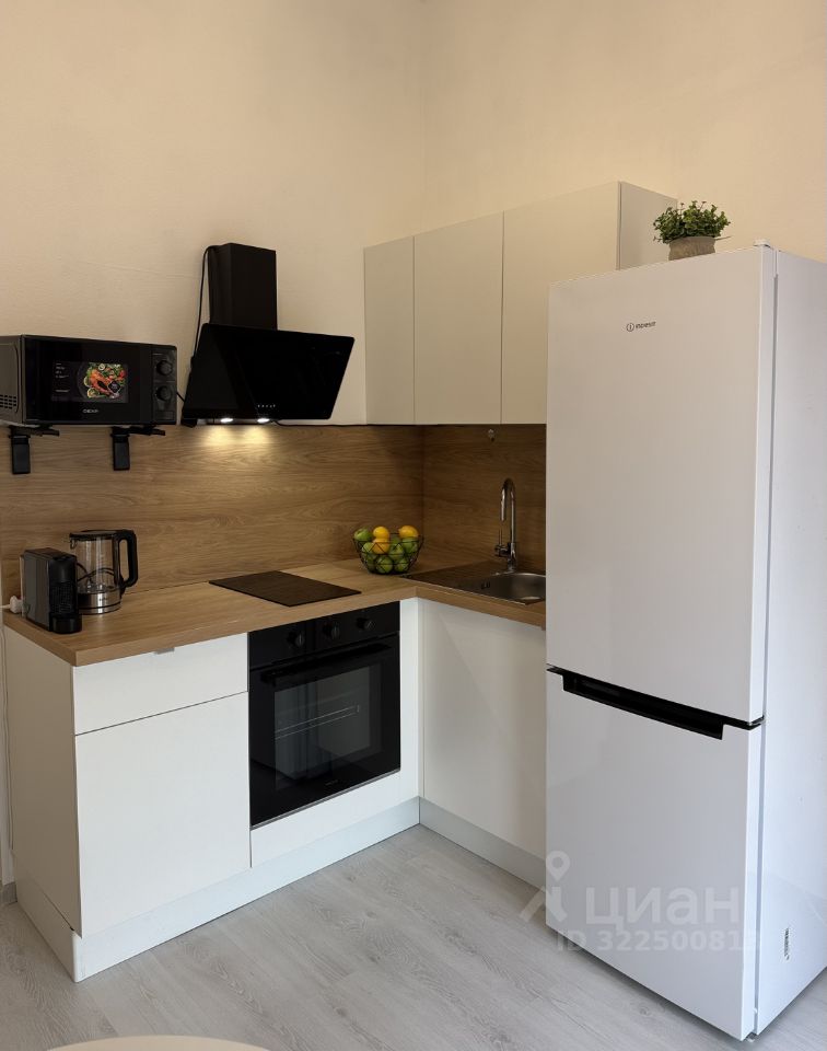 • современная кухня, оборудованная необходимой техникой (СВЧ, плита, духовой шкаф, вытяжка, холодильник, электрочайник, кофемашина);