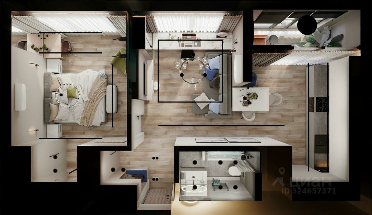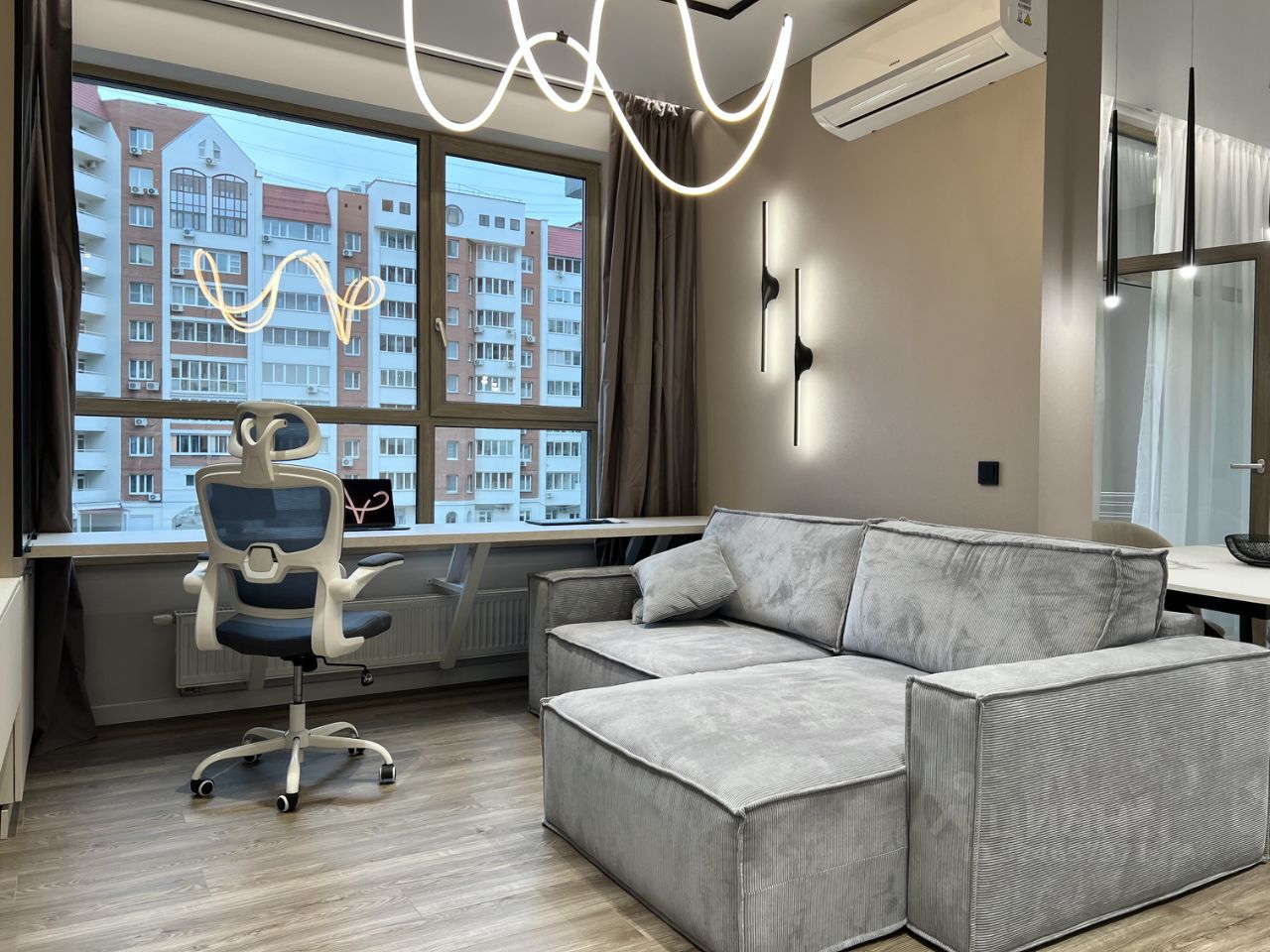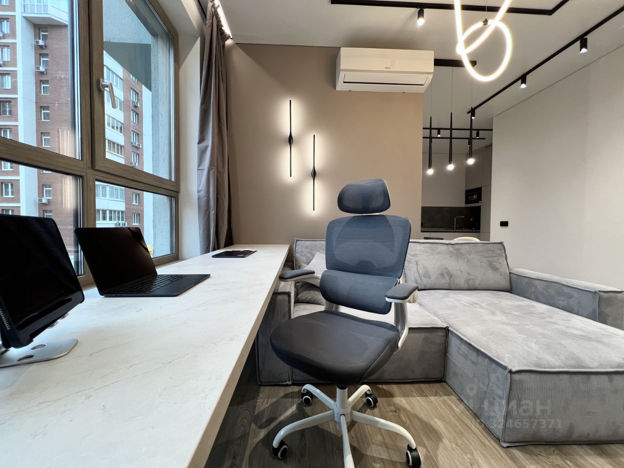 В квартире установлен умный дом с Алисой — можно управлять светом, кондиционером и техникой голосом.