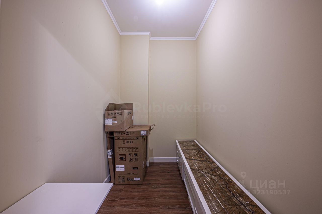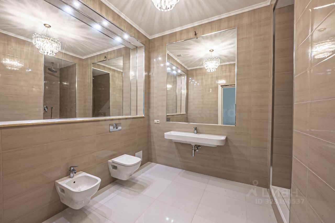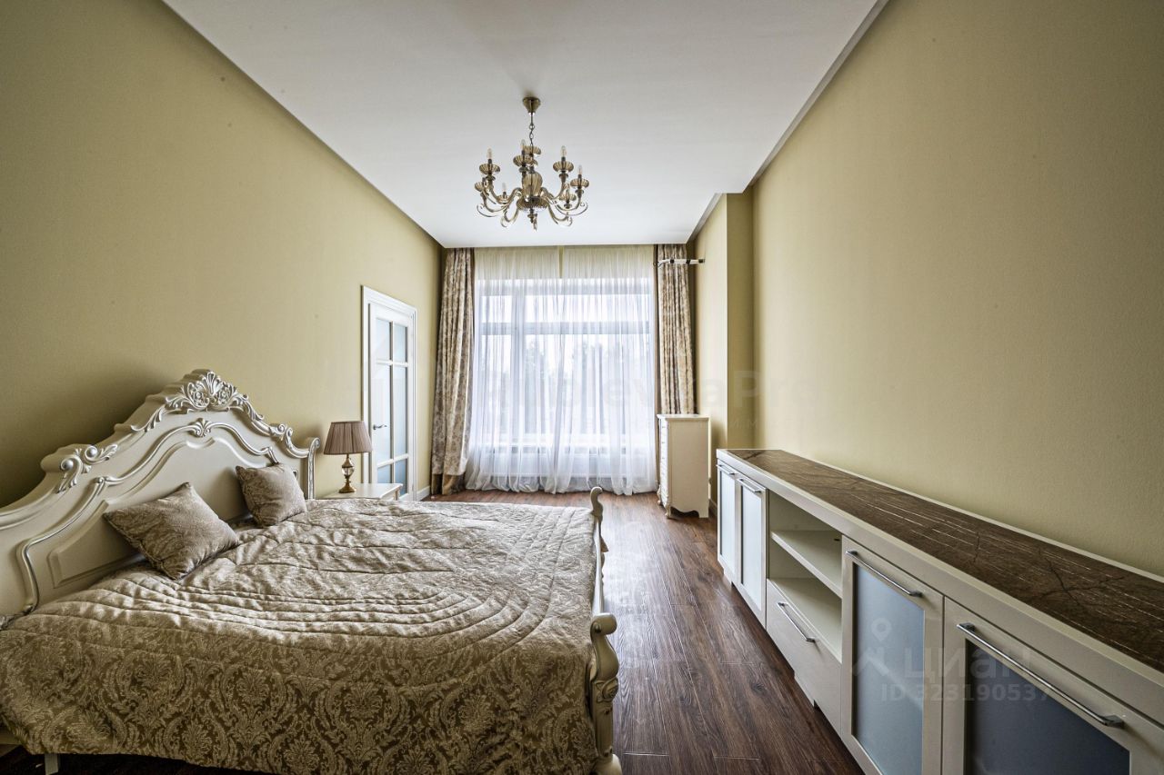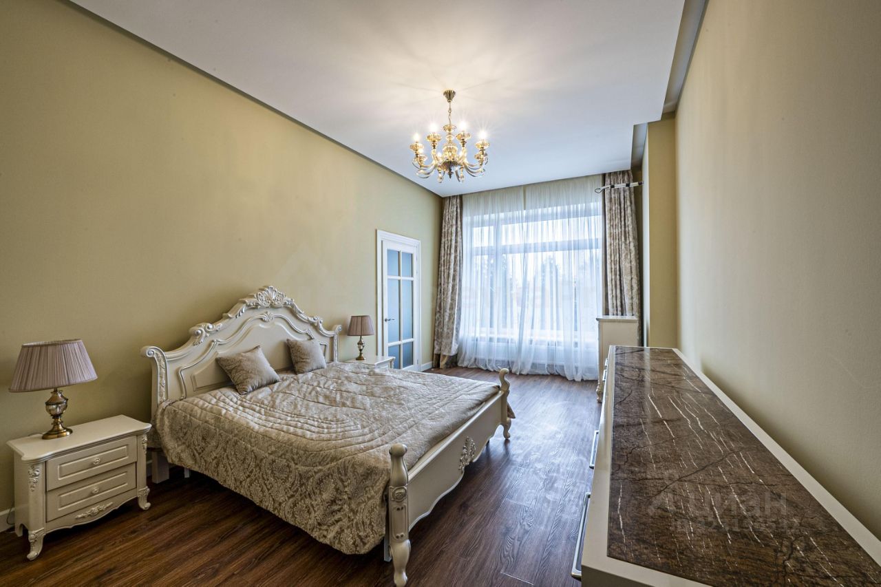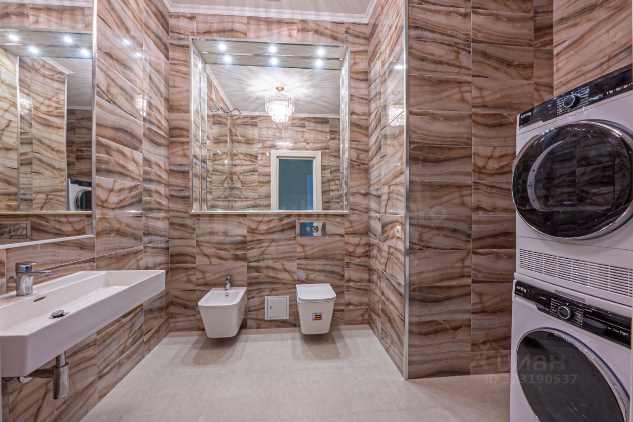 В квартире кухня-гостиная 33 м2, спальня 31 м2 со своим санузлом и гардеробной, прихожая с гостевым санузлом и гардеробной.