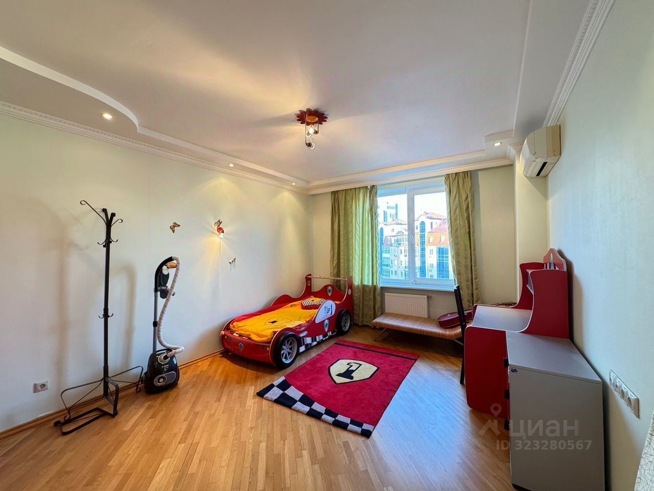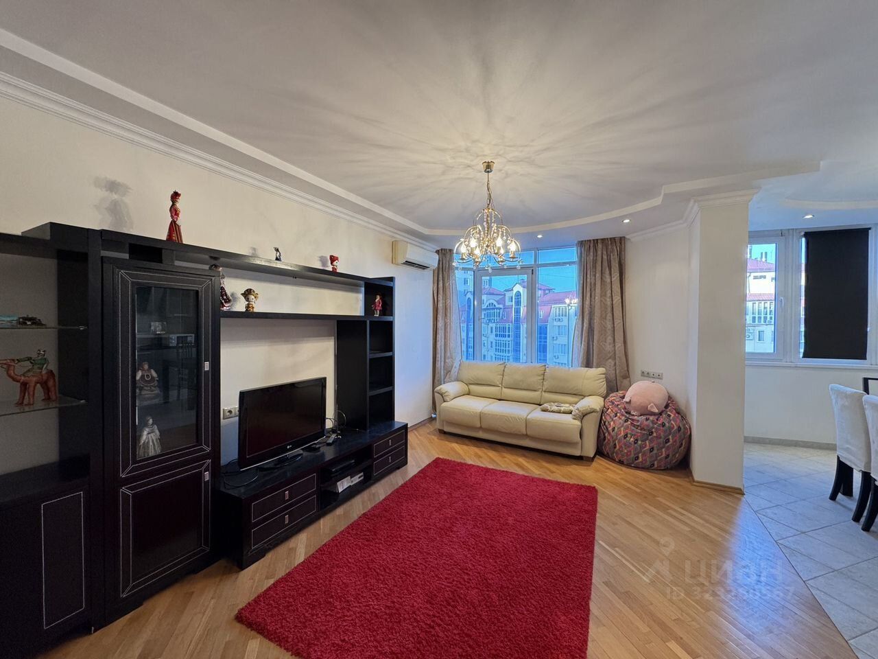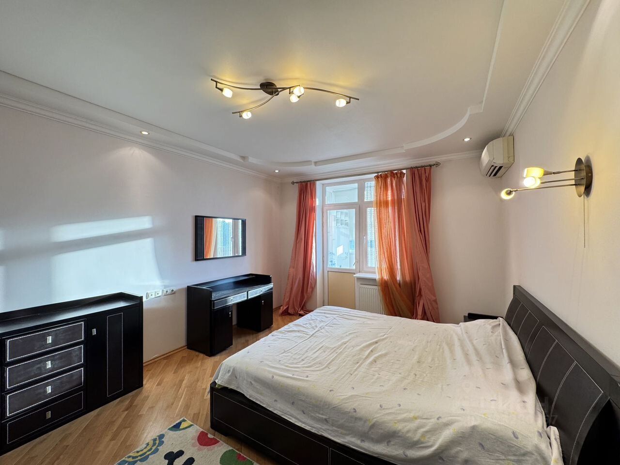 Красивая светлая просторная квартира. Идеально подойдет большой семье. Все в наличии, мебелированная, 3 кондиционера в каждой комнате, стиральная машина, холодильник, электроплита, микроволновка. Имеется также красивая лоджия. Две кровати - одна в спальной, другая - в детской, а также раскладной диван в зале.