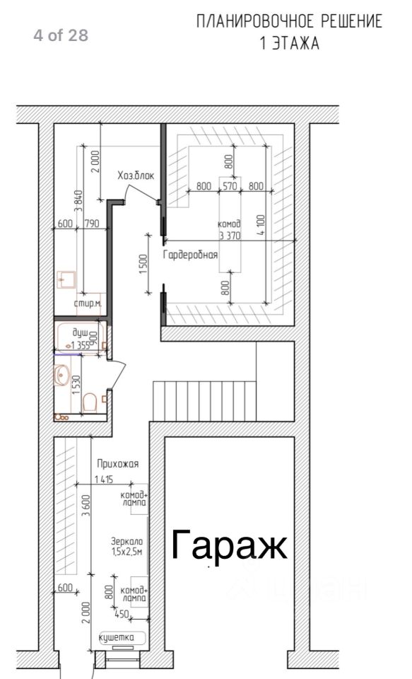 1ый уровень гараж(черновой),прихожая,сан узел,служебные помещения,большая гардеробная