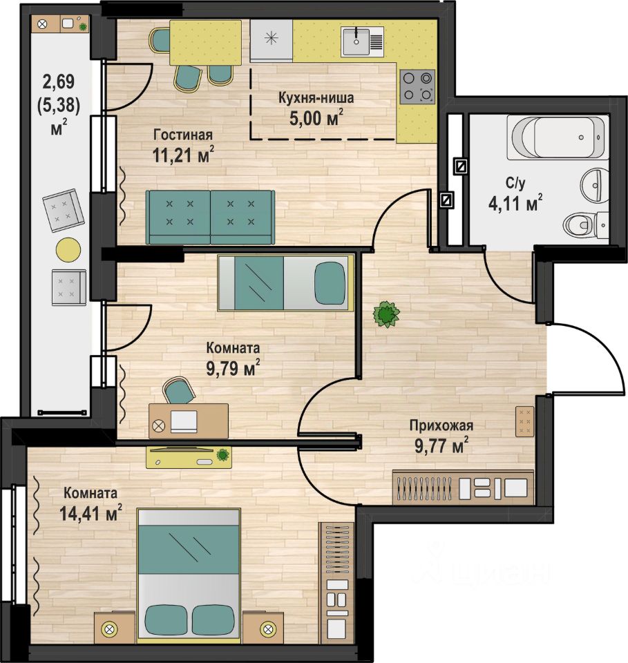 Продаётся 2-комнатная квартира в строящемся доме (Дом 35), срок сдачи: IV-кв. 2026, общей площадью 58.14 кв.м., на 2 этаже. Новый жилой комплекс от Специализированного застройщика "1000 Этажей"...