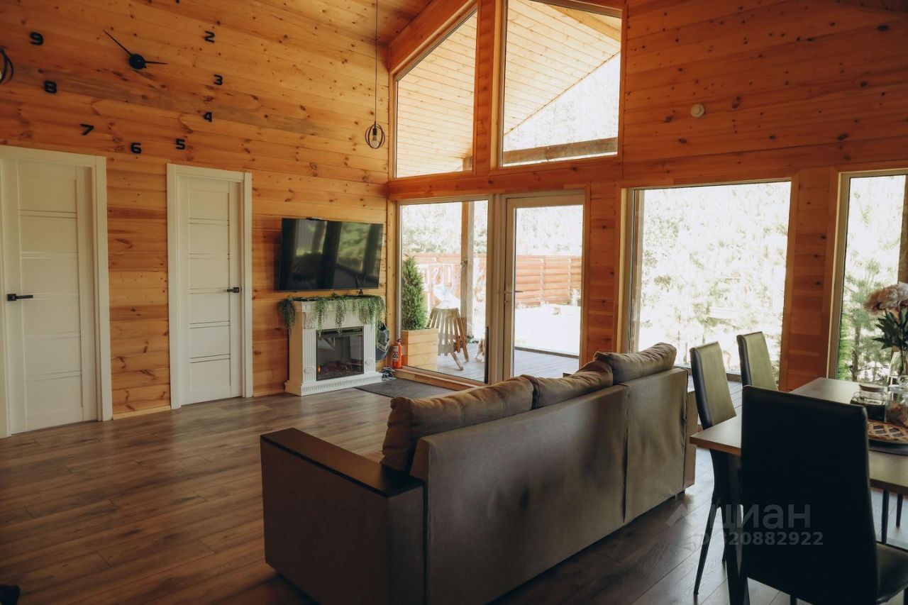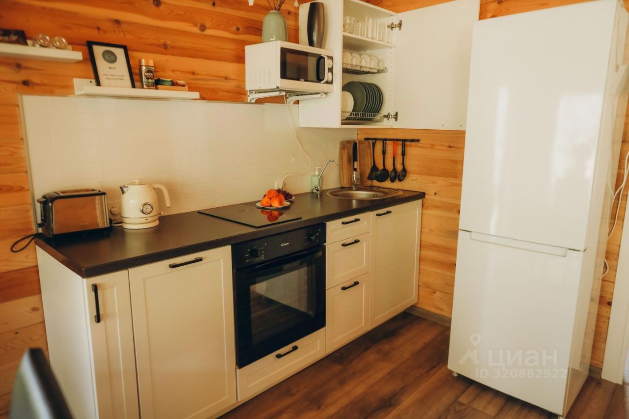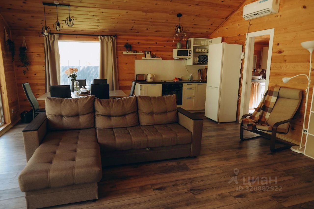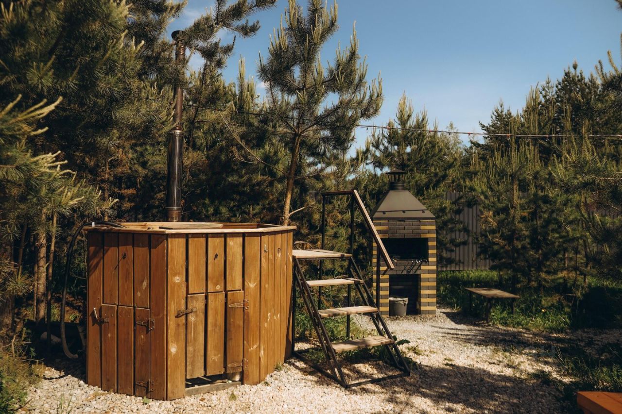 В доме 4 изолированные спальные комнаты, кухня-гостиная. Комфортно разместятся до 10 гостей. На кухне большой вместительный холодильник, духовой шкаф, микроволновая печь, посудомоечная машина, электрическая плита, электрический чайник, тостер, кастрюли, сковородки, салатники, сотейник, штопор, ножи, разделочные доски, комплект посуды на 10 персон. В доме также камин, кондиционер, Wi-Fi, телевизор, санузел и душевая кабина , белоснежное постельное белье, полотенца, детский манеж-кроватка (предоставляется по запросу). На территории есть мангал, баня, парковка до 4 авто, детская зона.