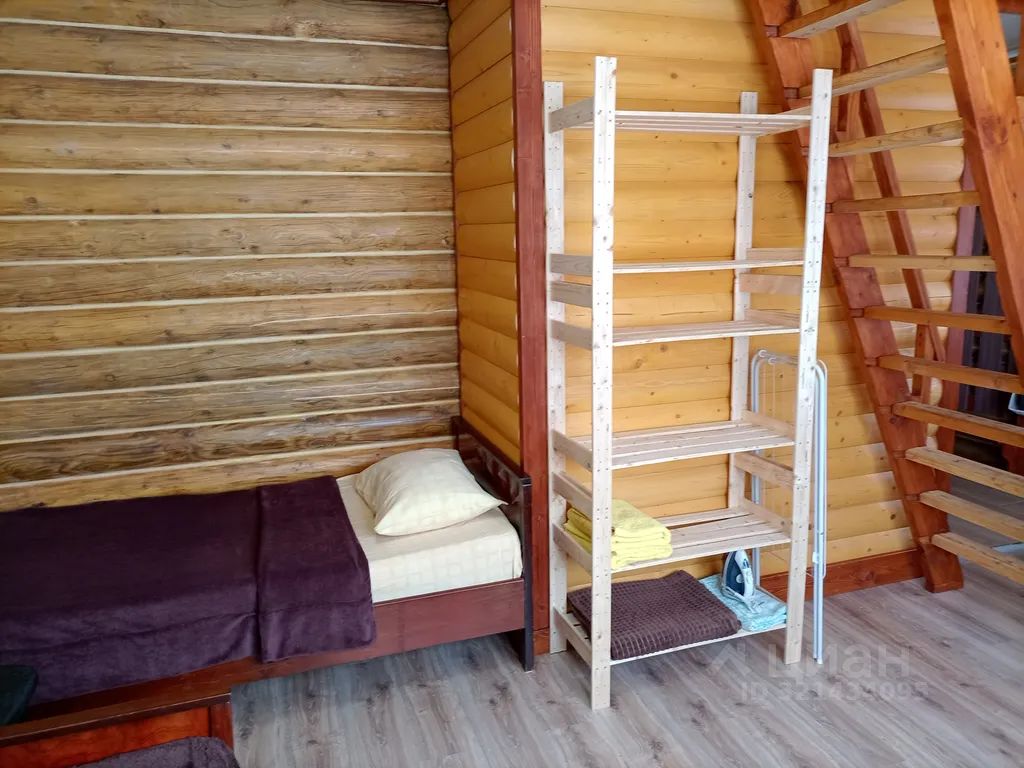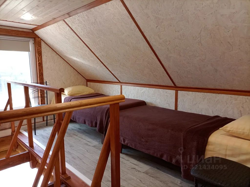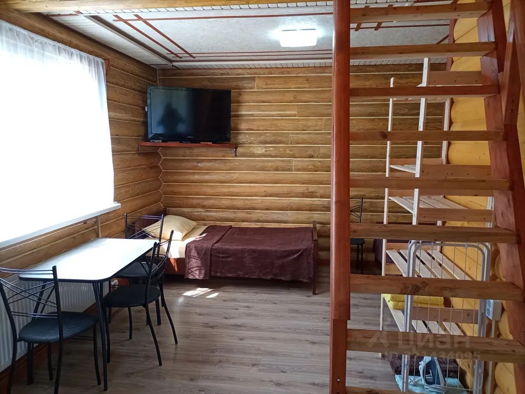 Двухуровневый срубовой дом в частном секторе западного района. На первом этаже две односпальные кровати и раскладной диван, на втором этаже ещё две односпальные кровати. Комфортно для 4-х человек, максимально возможно 6.