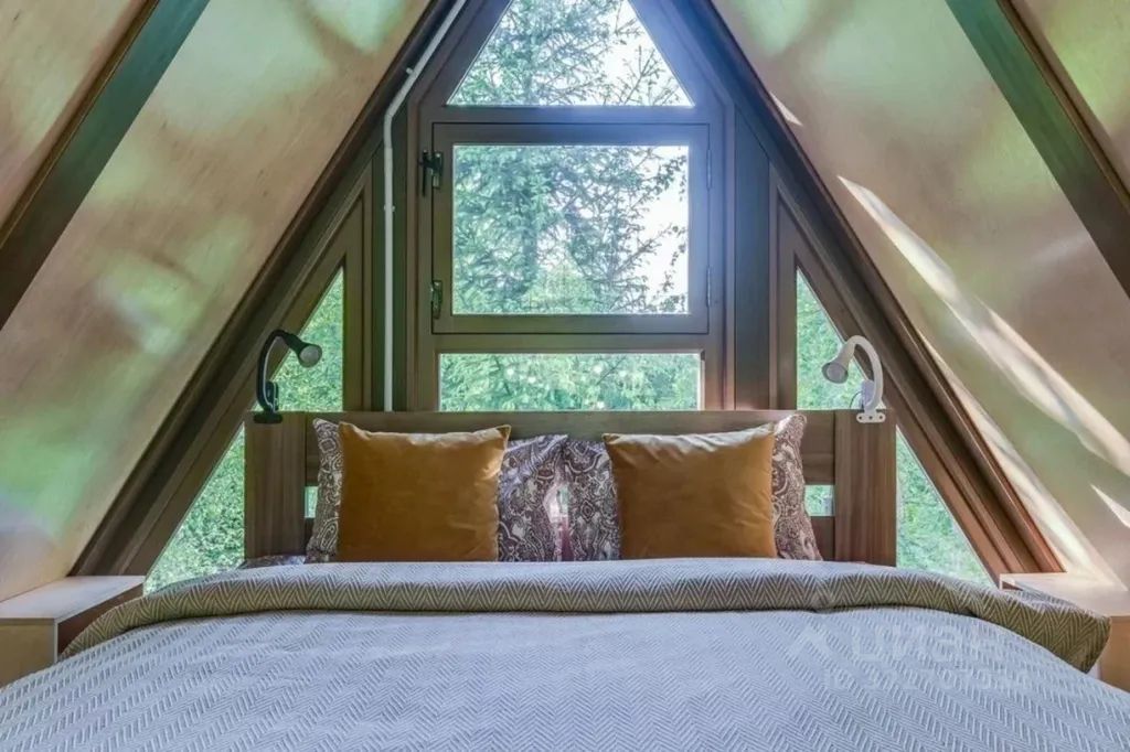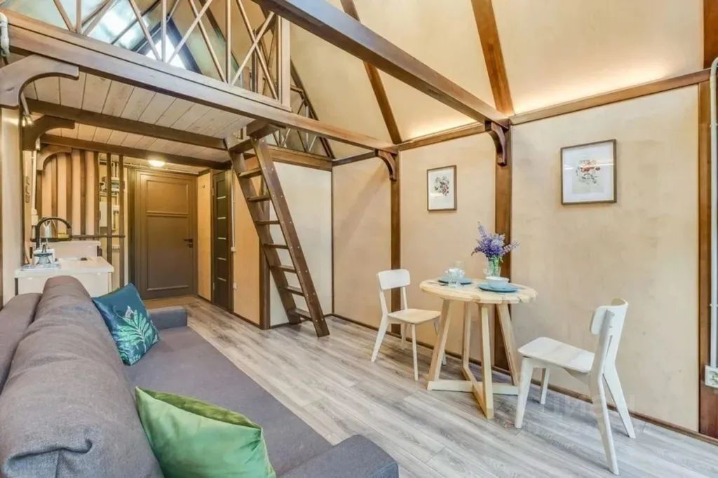 - Мебель: двуспальная кровать, диван-кровать, шкаф, прикроватные тумбочки, обеденный стол, стулья