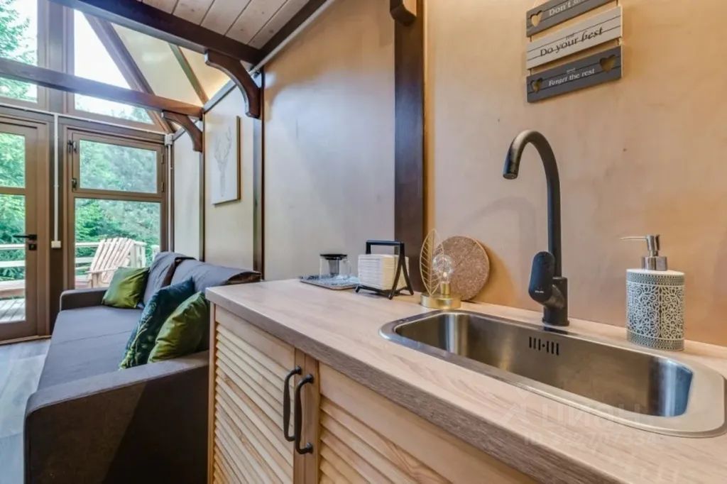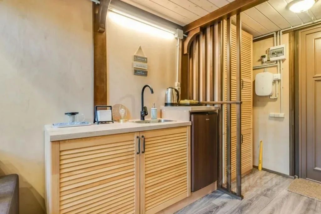 - Кухонная зона: мини-холодильник, электрическая плита, чайник, посуда, раковина