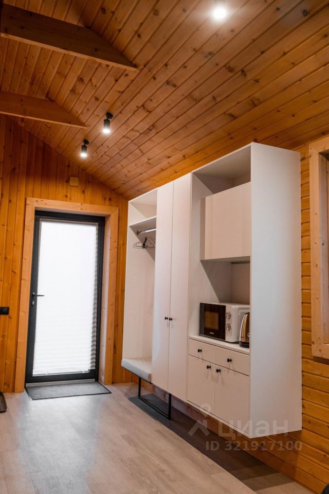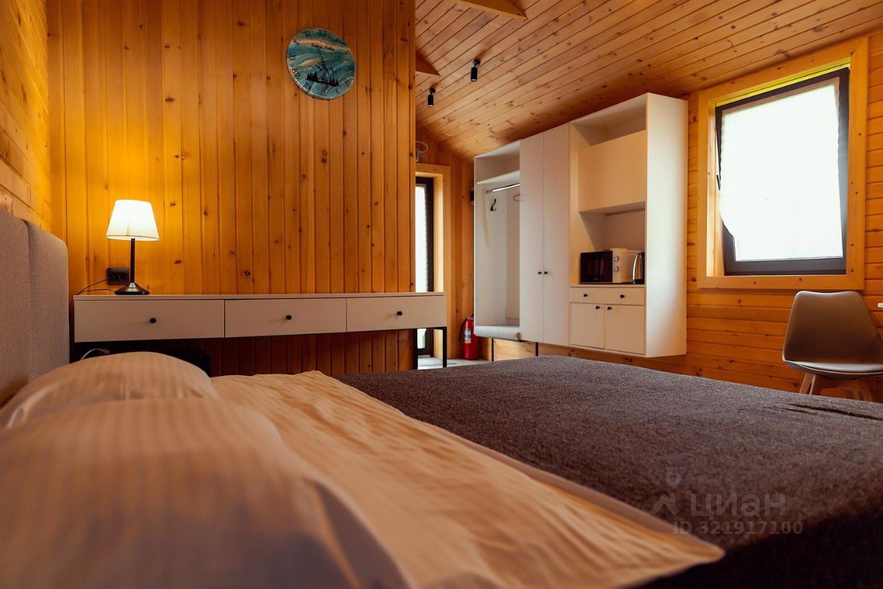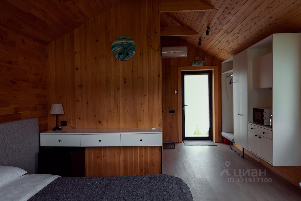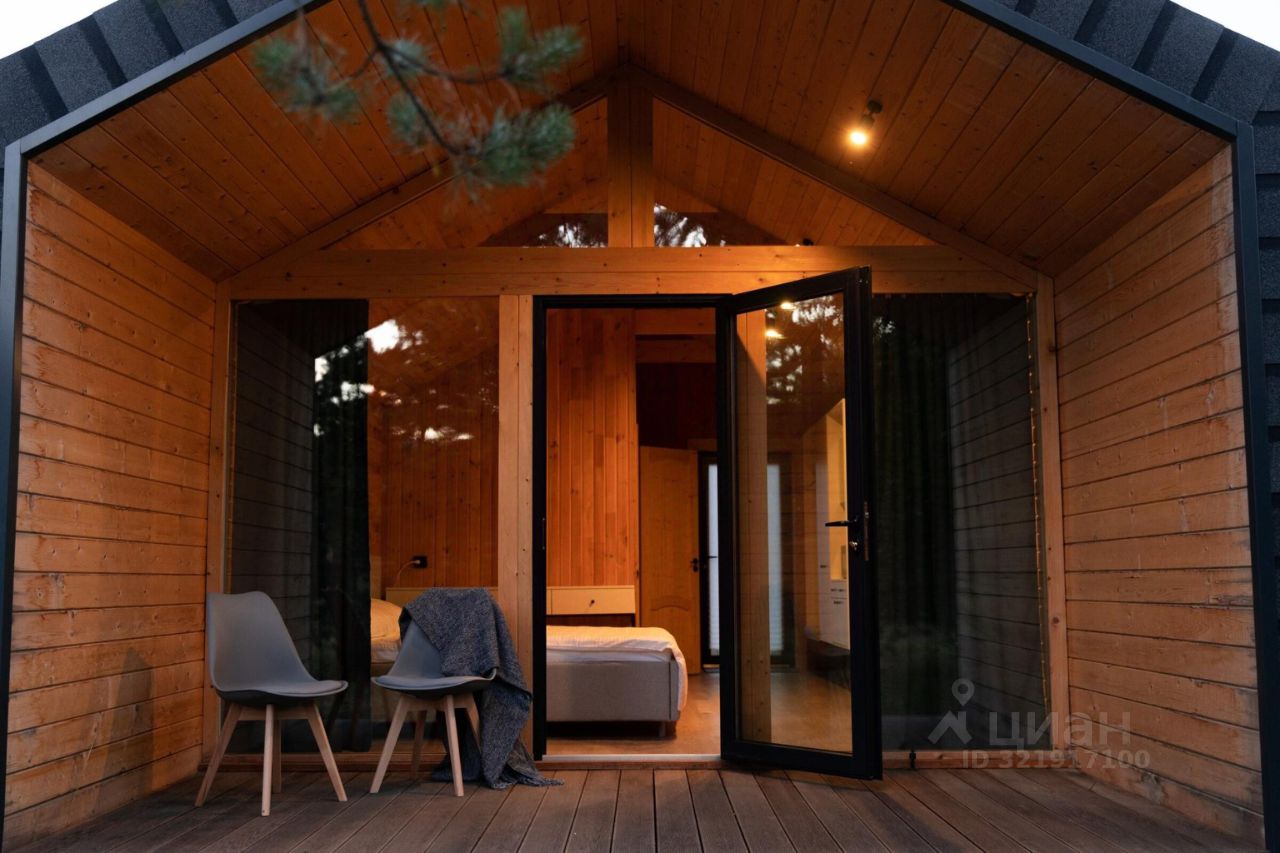 В доме есть всё необходимое для отдыха и приготовления пищи: большая двуспальная кровать, шкафы, стол со стульями, холодильник, микроволновая печь, чайник, фен, набор посуды. Также на террасе есть мебель. В каждом доме есть удобный санузел с душем и тёплым полом. Для комфортного проживания в любое время года в домах установлены кондиционеры и тёплый пол.