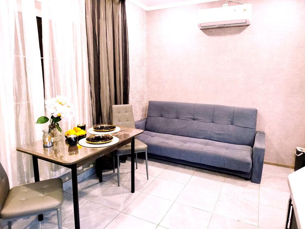 Единое пространство, включающее в себя холл, гостиную (есть двуспальный диван) и кухню с выходом на открытую террасу