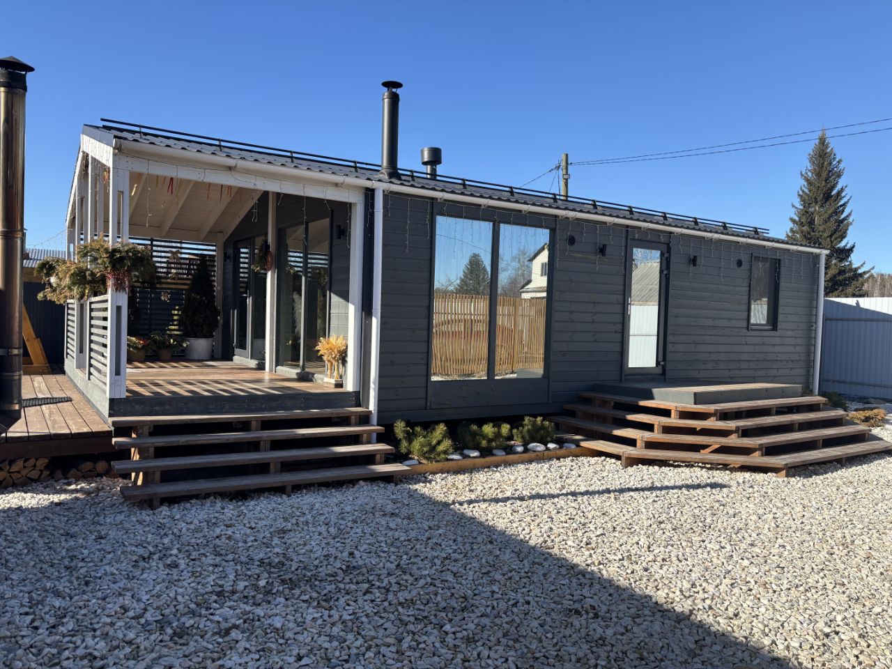 Площадь дома 65 кв.м. с крытой террасой.