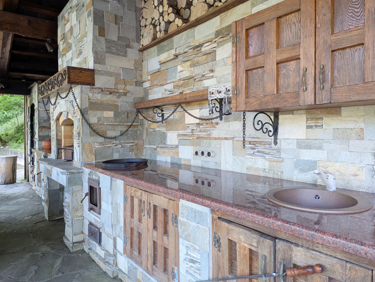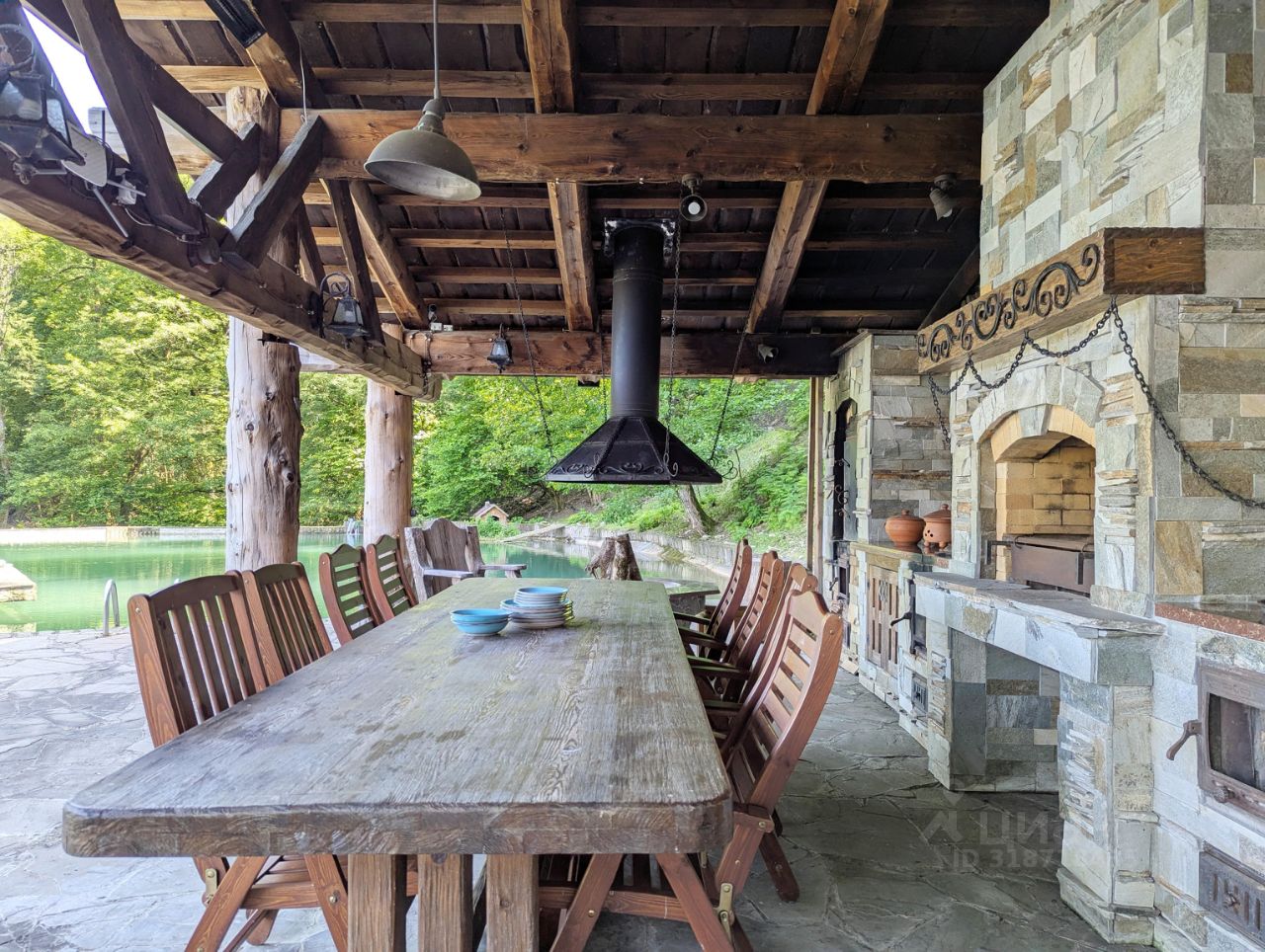 В центре участка, наша изюминка- изумительный по красоте пруд с родниковой водой. На берегу пруда обустроена летняя кухня с коптильней, чугунным чаном, зоной барбекю и костровым местом. Вы сможете организовать незабываемое застолье под открытым небом.