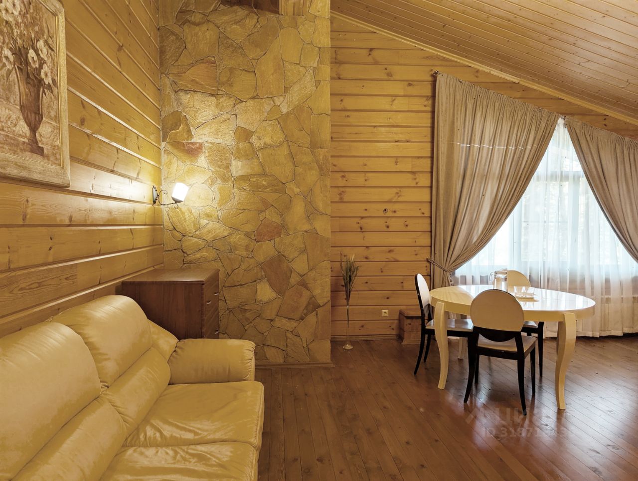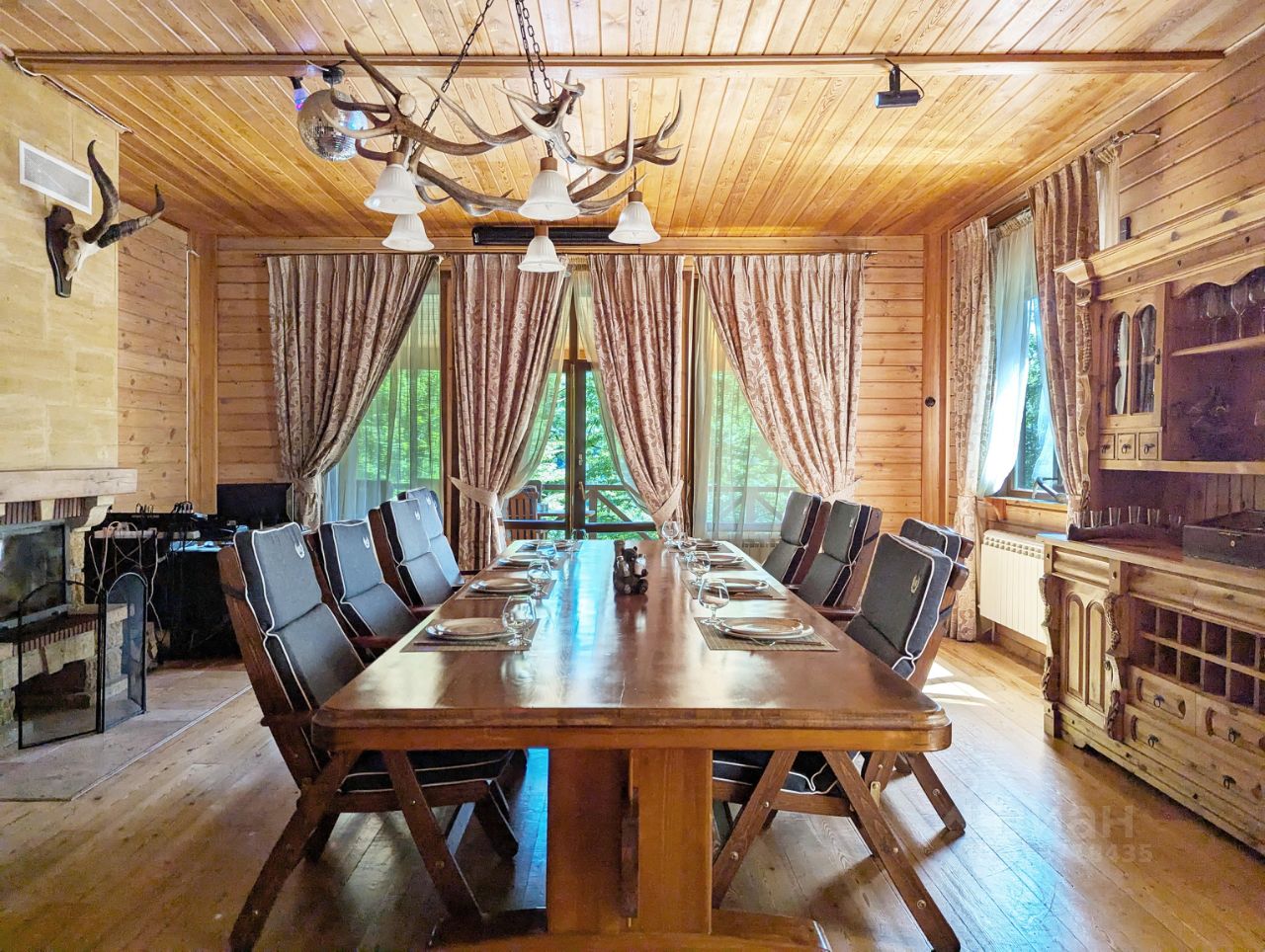 1 этаж: просторная гостинной с камином ,с мебелью в стиле