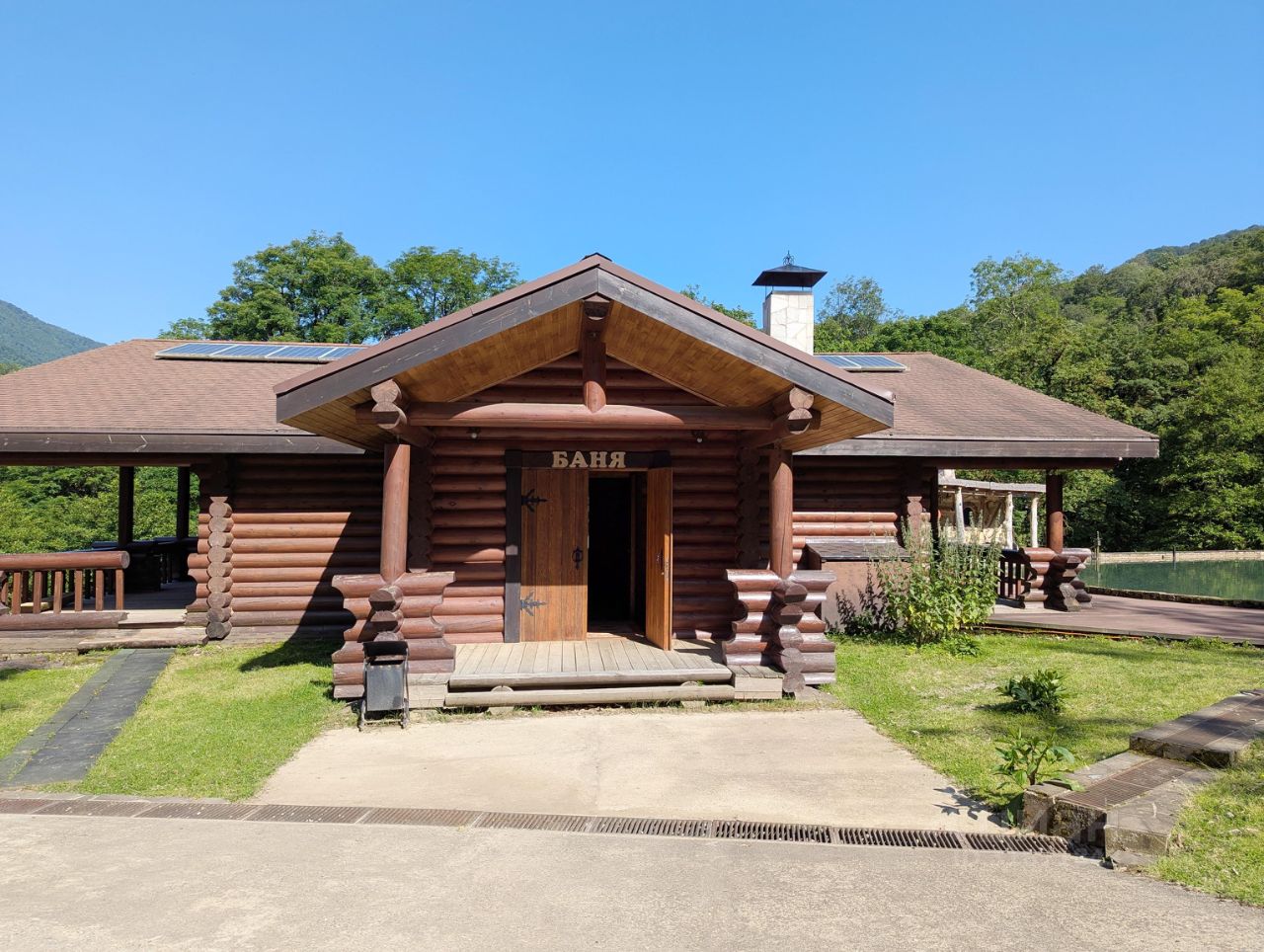 Роскошная дровяная баня на 10 человек и Баня - Land с печью черная "по-белому". Купель с родниковой одой и чан подогреваемый живым огнем. Терраса для солнечных ванн.