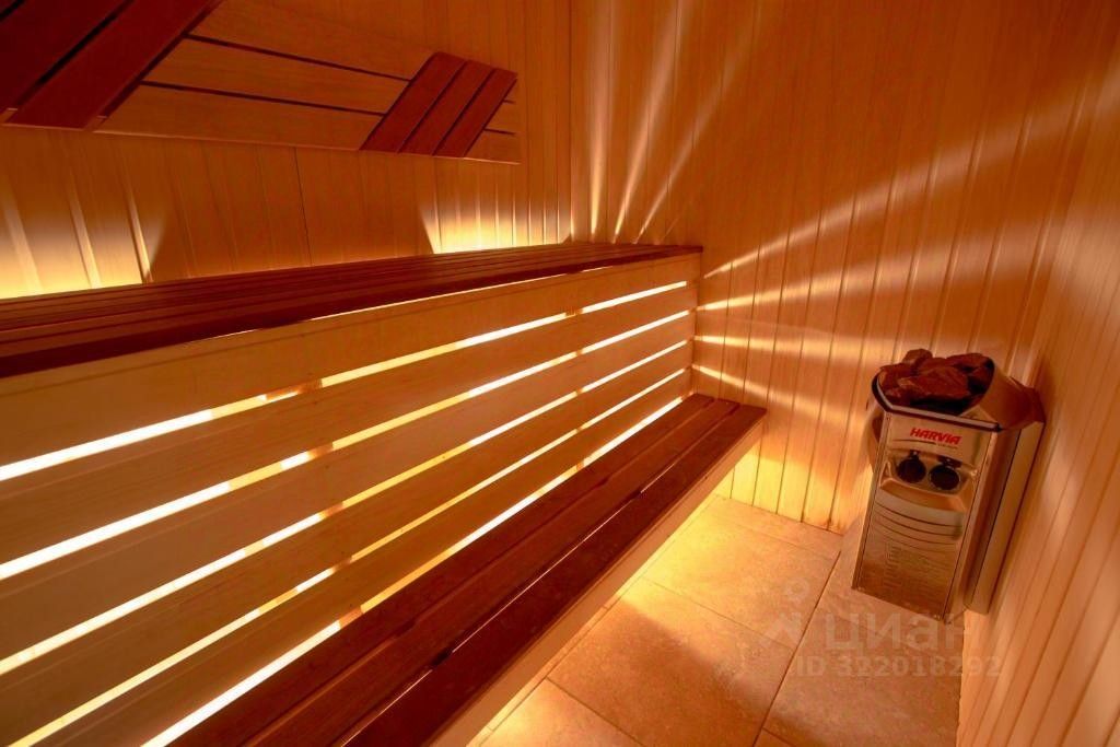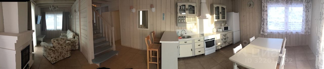 На первом этаже: прихожая, кухня (кухня из массива сосны, обеденный стол со стульями, большой холодильник, электроплита , микроволновая печь, чайник, кухонная посуда, столовая посуда и приборы на 6 персон), большая гостиная с камином (2-х спальный диван, ЖК телевизор), санузел с сауной (WC, душевая, фен).