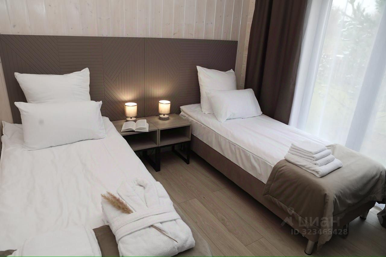 Уютный коттедж, оборудованный всем необходимым для комфортного проживания и рассчитанный на 4 гостей. В коттедже две спальные комнаты, кухня-гостиная, терраса, санузел с душем. В коттедже установлены кровати трансформеры и гости самостоятельно могут выбрать их конфигурацию: двуспальные или односпальные. Кухня с обеденной зоной оборудована всей необходимой техникой и посудой. Гостям предоставляется постельное белье, полотенца и халаты.