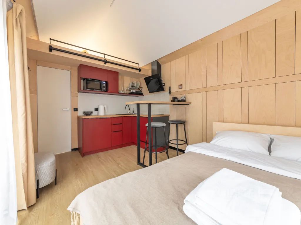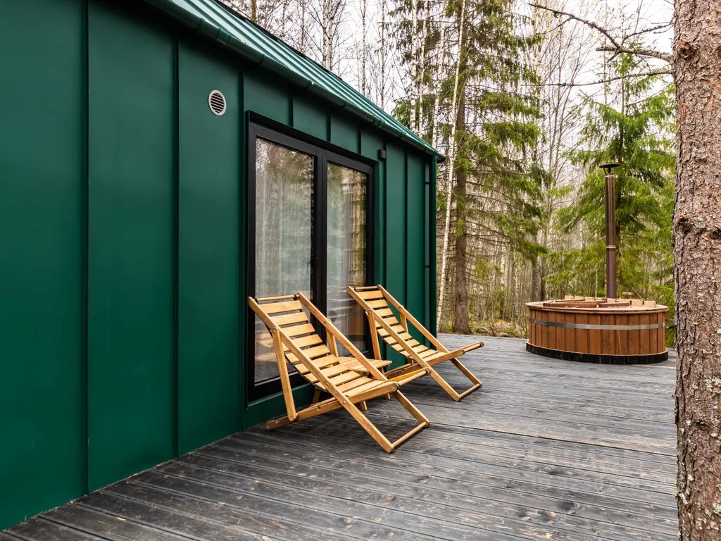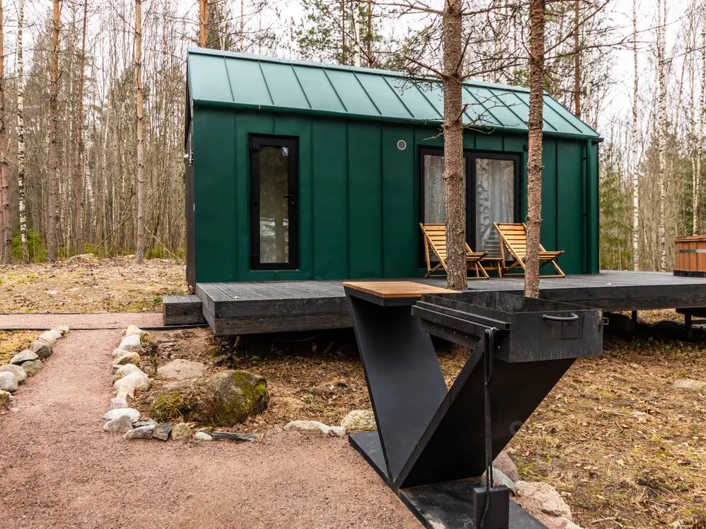 Уютный дом-студия 21м2 с панорамными окнами с видом на хвойный лес.