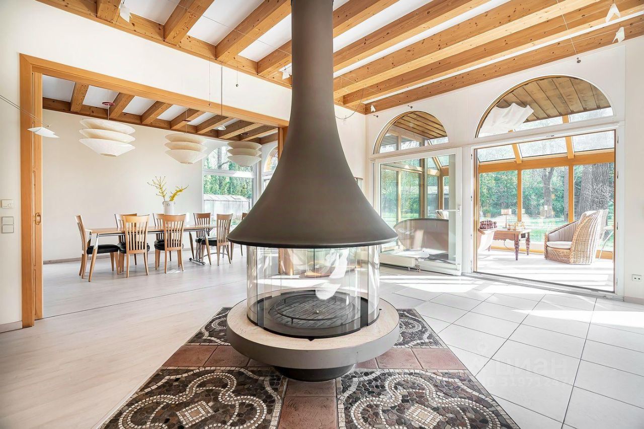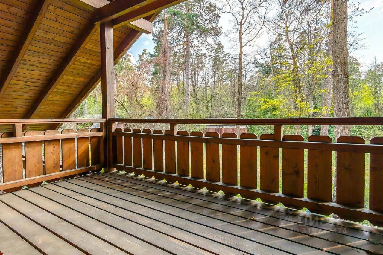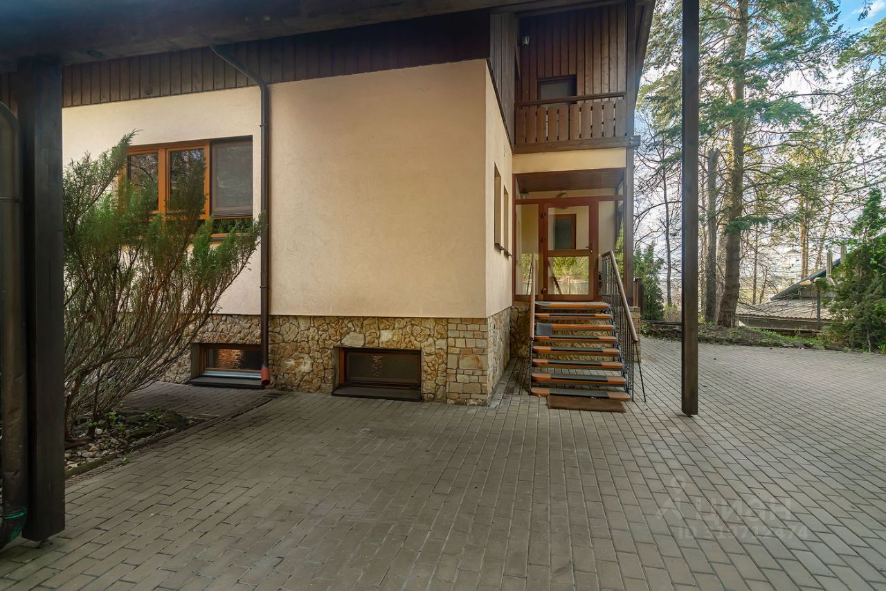 Коттедж в стиле шале расположен на 50 сотках среди вековых хвойных деревьев. Дом после капитального ремонта, частично меблирован. В доме проложены теплые полы, установлено частичное кондиционирование. Кухня оснащена бытовой техникой ведущих производителей, кухонный гарнитур компании "Boffi".