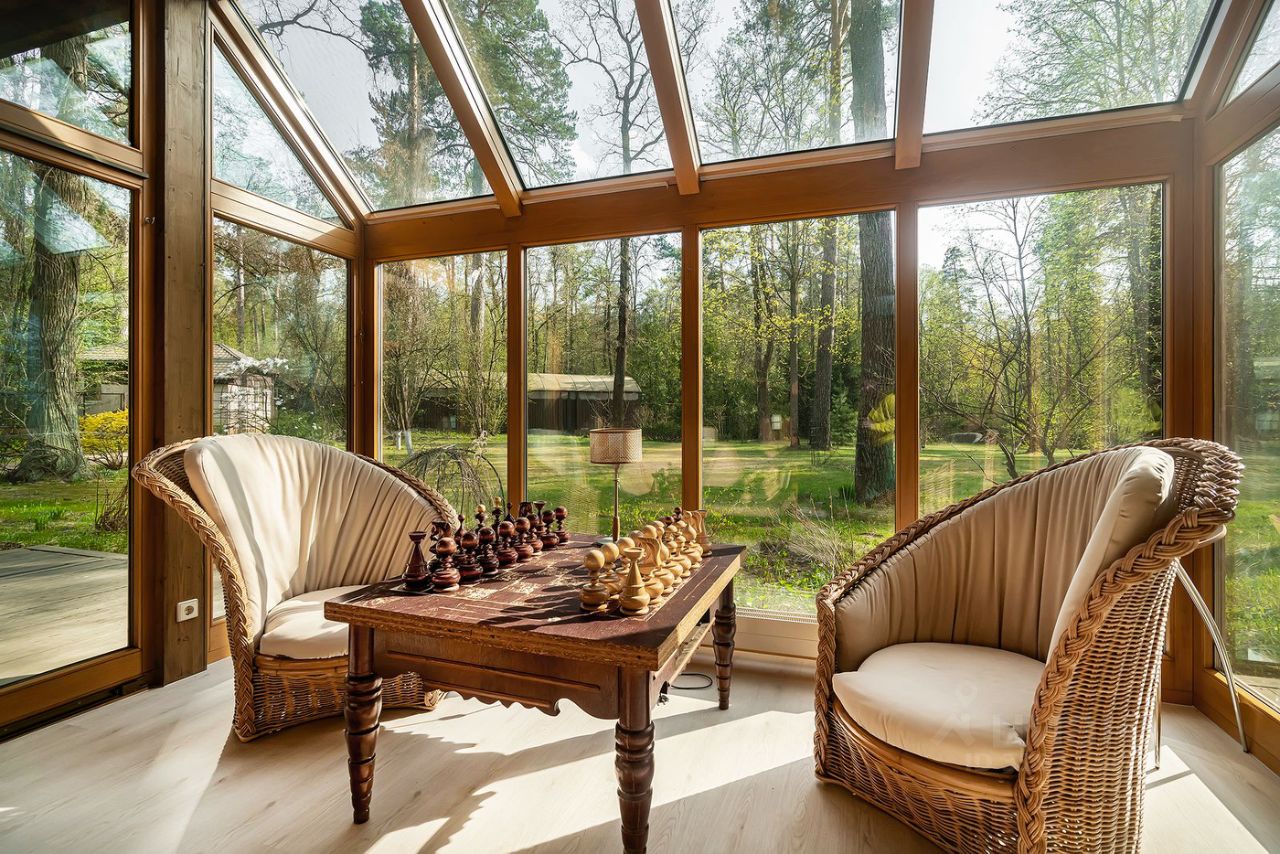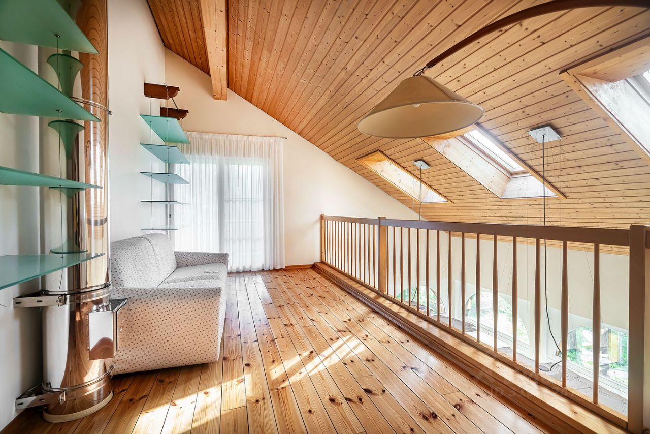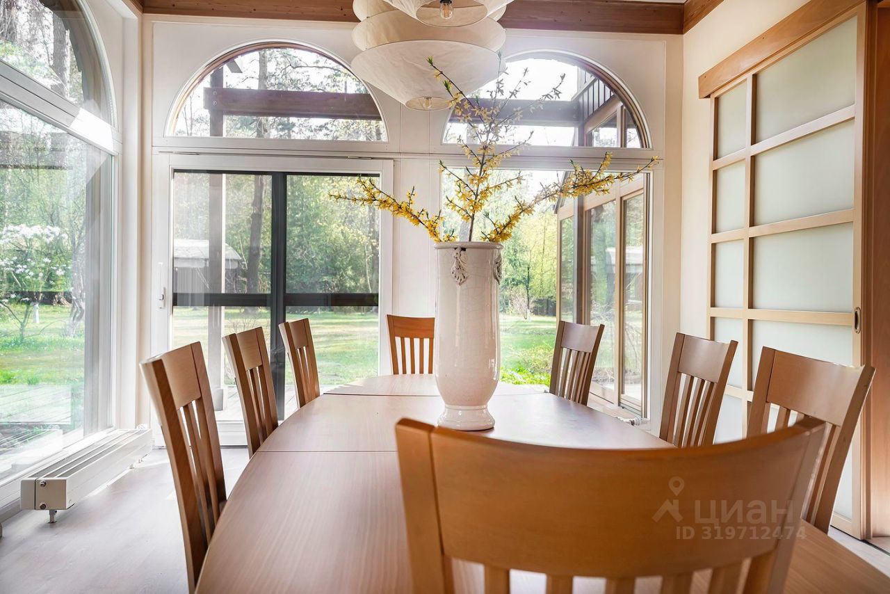 Коттедж в стиле шале расположен на 50 сотках среди вековых хвойных деревьев. Дом после капитального ремонта, частично меблирован. В доме проложены теплые полы, установлено частичное кондиционирование. Кухня оснащена бытовой техникой ведущих производителей, кухонный гарнитур компании "Boffi".