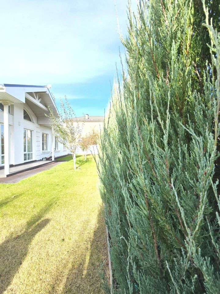 - Инфраструктура на участке: газон с ландшафтным дизайном, зелёный забор,